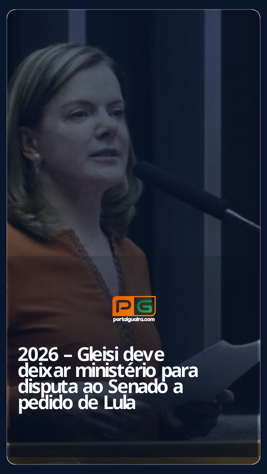 A ministra-chefe da Secretaria de Relações Institucionais (SRI), Gleisi Hofmann, tentará ser, novamente, senadora. Hoje licenciada da Câmara dos Deputados, a ministra já avisou à sua equipe ministerial da intenção de concorrer, pela terceira vez, ao assento no Senado, pelo Paraná, após ter conversado com o presidente Luiz Inácio Lula da Silva (PT).