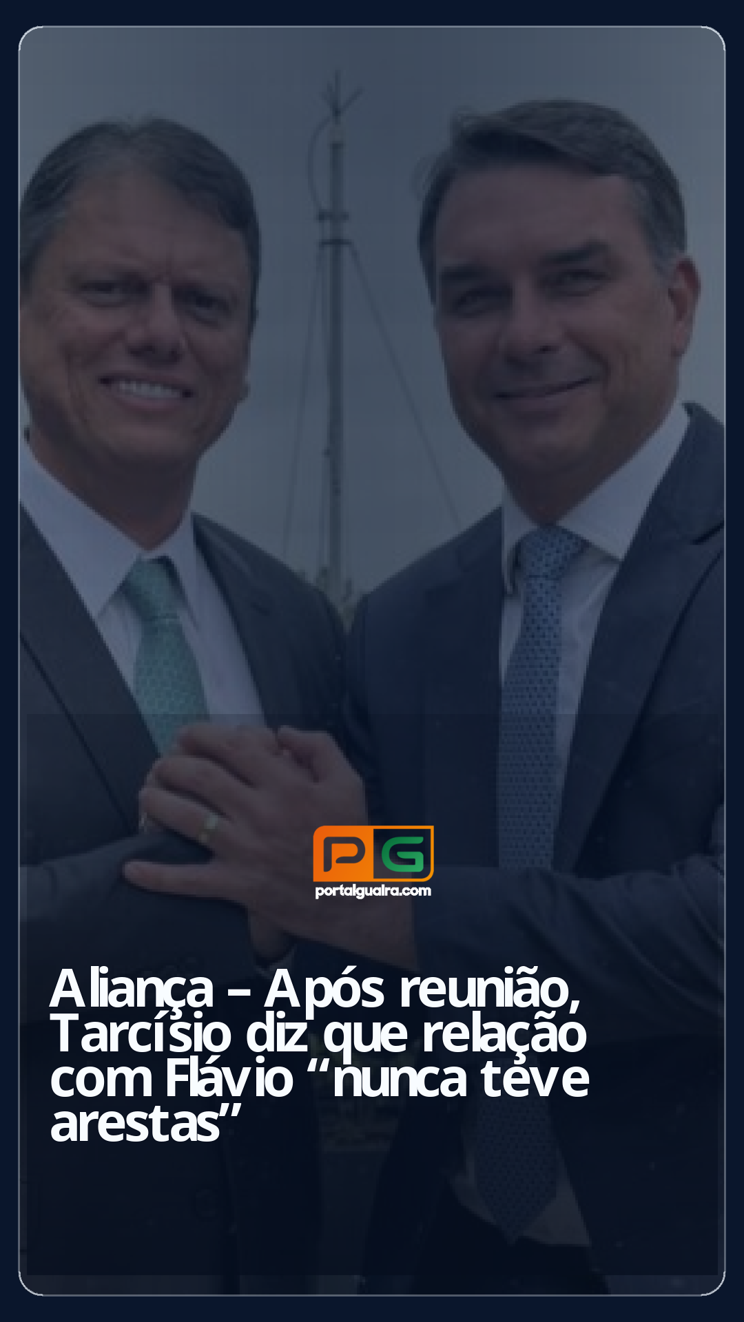 Flávio Bolsonaro também postou uma foto ao lado de Tarcísio depois do encontro. Na legenda, o senador falou em “fazer história” e promover o “progresso” da sociedade.
