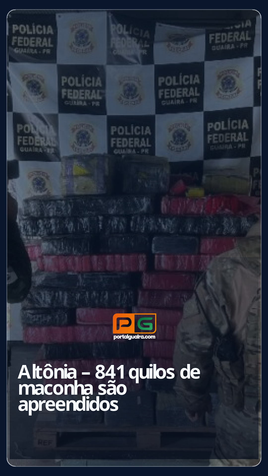 841 quilos de maconha foram apreendidos em Altônia, cidade no Noroeste Paranaense, na sexta feira (3).