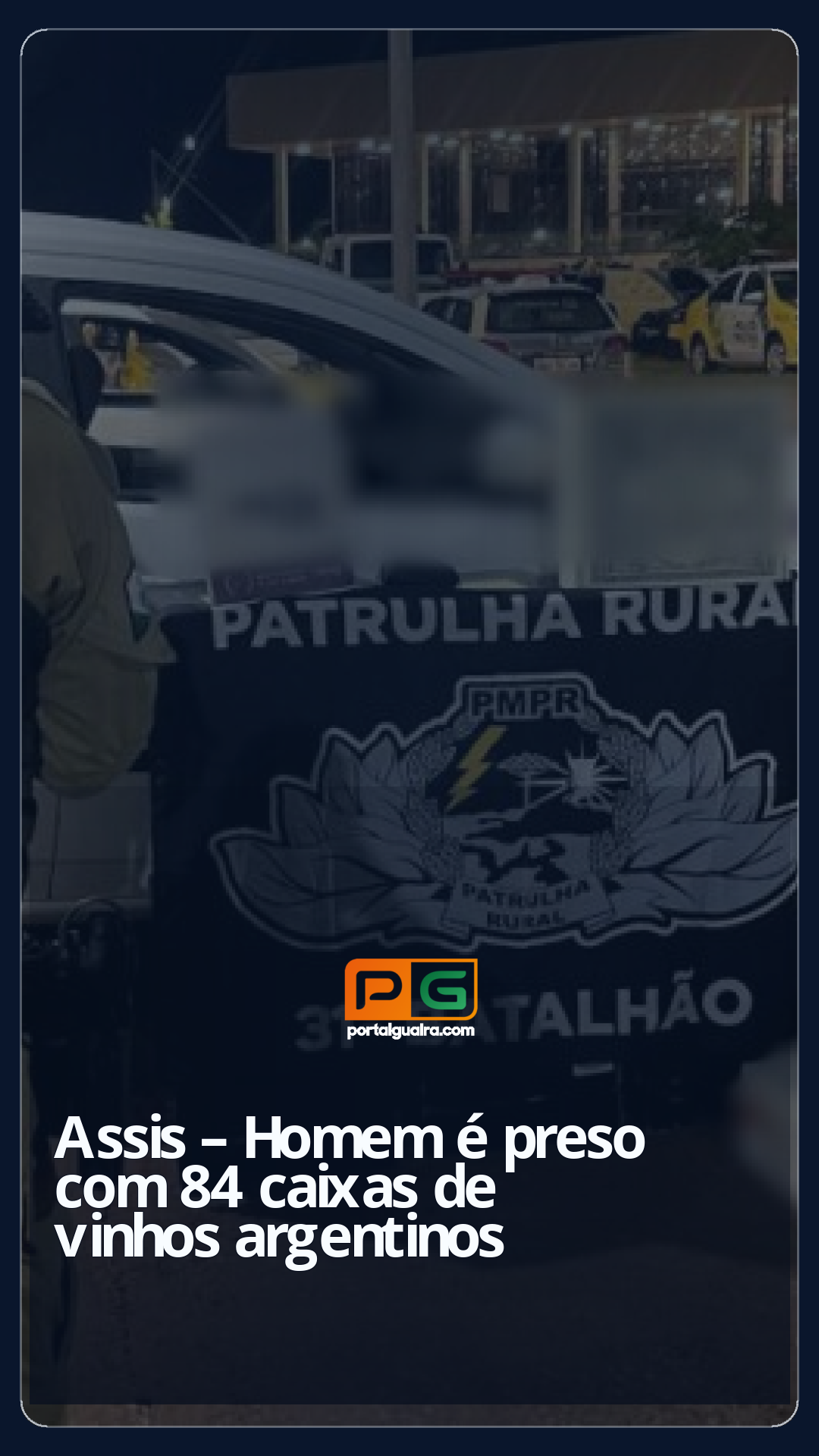 O veículo abordado estava carregado de 84 caixas de vinhos derivados da Argentina. Assim, foi dada voz de prisão ao condutor pelo crime de descaminho.
