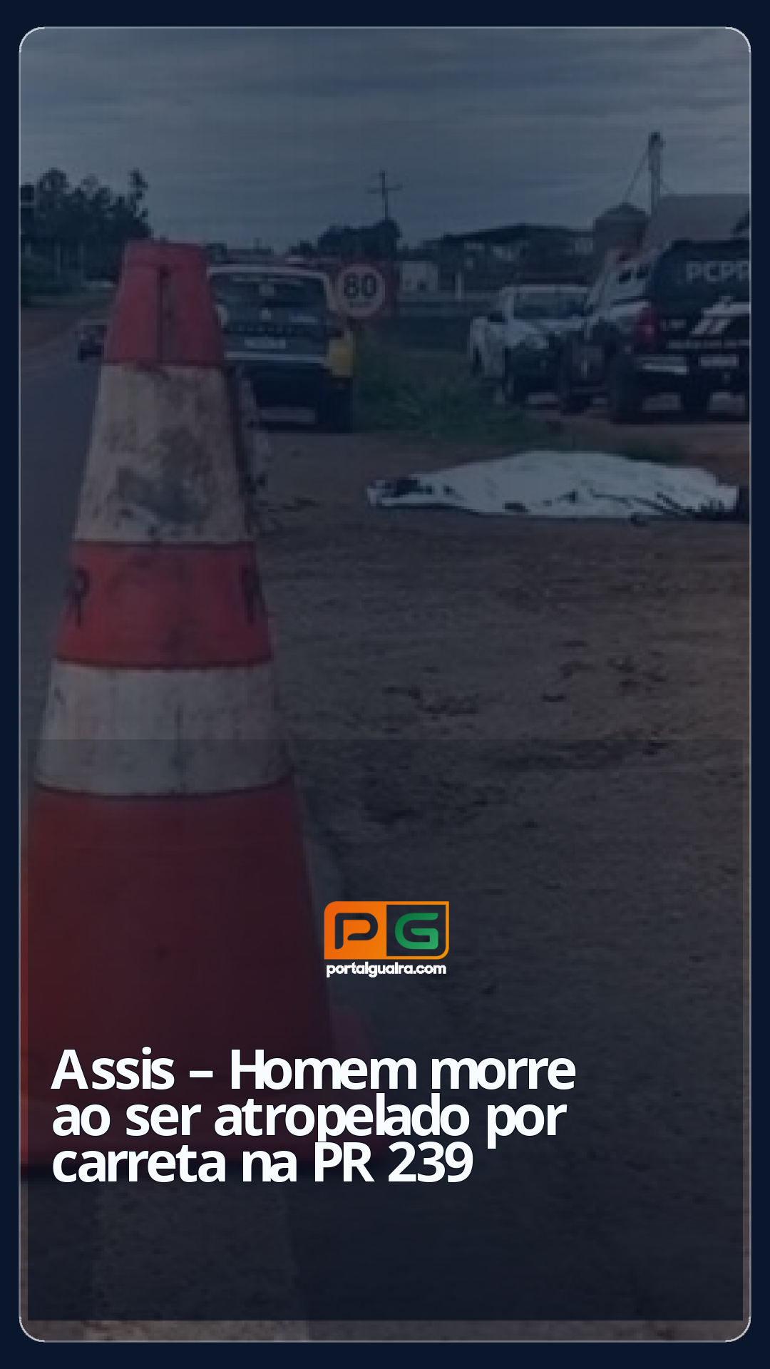Um homem morreu após ser atropelado por carreta, na madrugada de terça-feira (15), na PR-239, em Assis Chateaubriand.