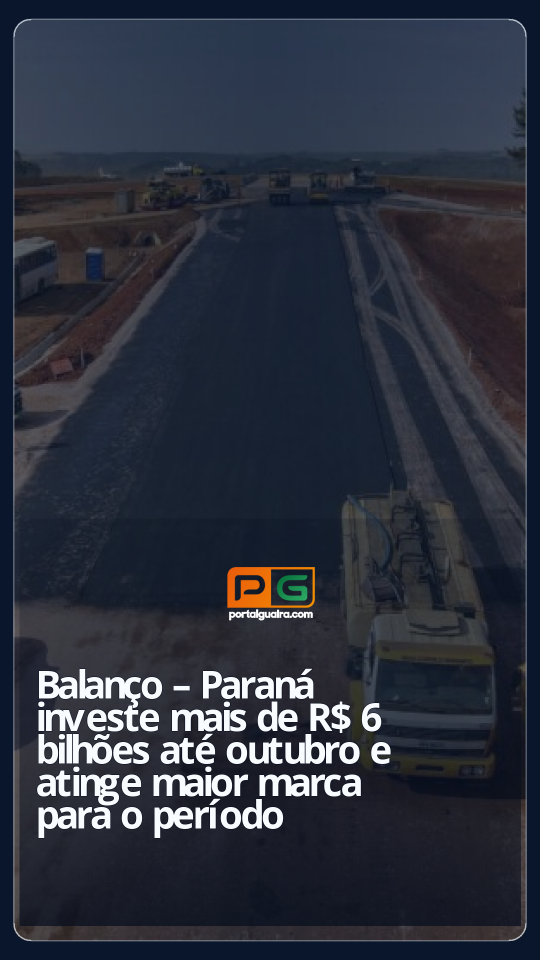 O Paraná investiu mais de R$ 6 bilhões entre janeiro e outubro de 2025. Esse é o maior valor já registrado em toda a sua história, superando em 13% o recorde anterior, alcançado em 2024, quando o Estado aplicou R$ 5,3 bilhões nos dez primeiros meses do ano.