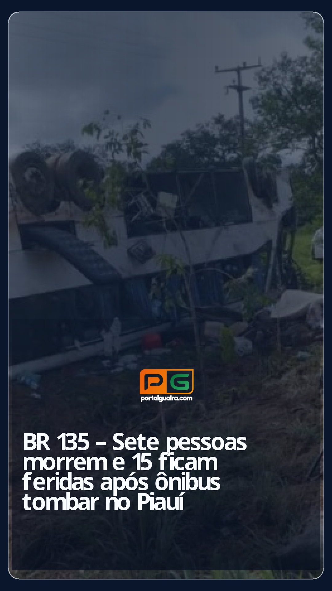 Um ônibus tombou na madrugada de terça-feira (7) na BR-135, entre São Gonçalo do Gurguéia e Corrente, no Sul do Piauí. Até a última atualização desta reportagem, sete pessoas morreram e outras 15 ficaram feridas, segundo a Polícia Rodoviária Federal (PRF). Esse é o segundo acidente envolvendo ônibus de passageiros no estado em menos de 24 horas.