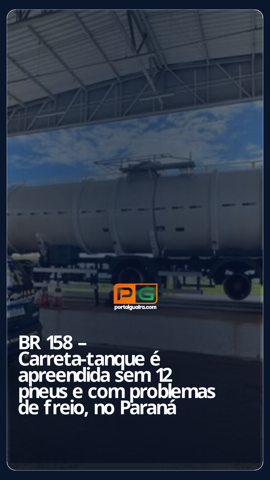Uma carreta-tanque foi apreendida pela Polícia Rodoviária Federal (PRF) após ser flagrada circulando sem 12 pneus na BR-158, em Pato Branco, no oeste do Paraná.