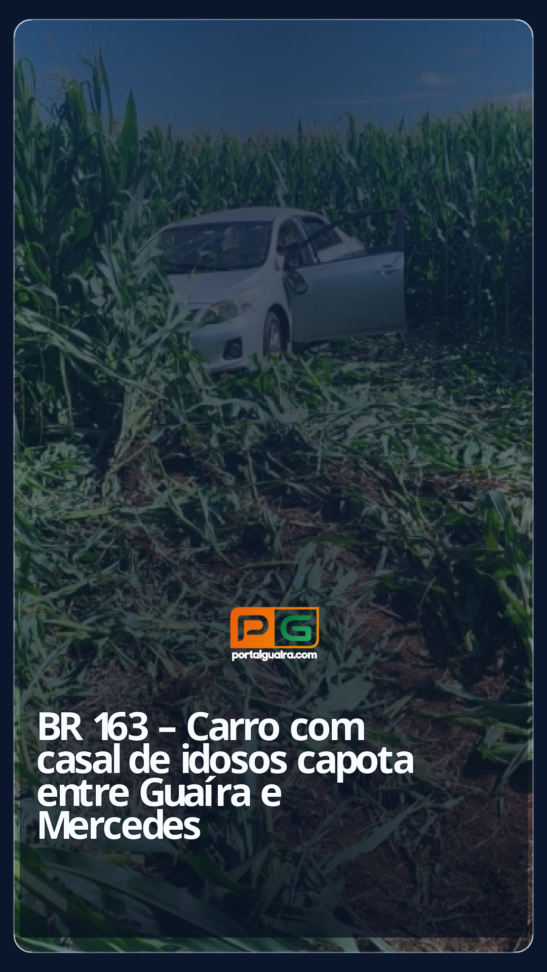 Desgovernado, o veículo saiu da pista e invadiu um milharal, vindo a capotar.