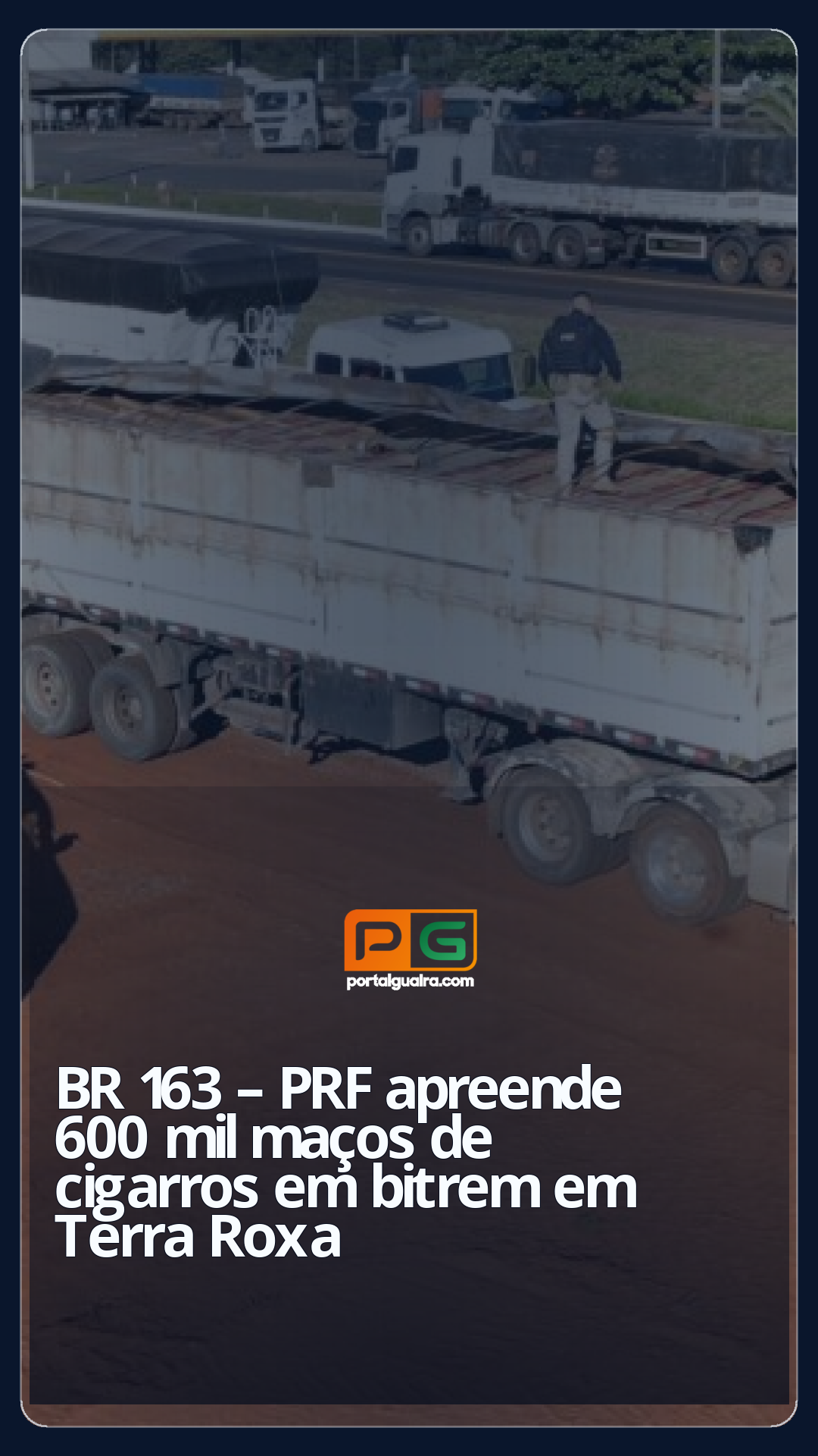 A Polícia Rodoviária Federal (PRF) apreendeu na manhã de quinta-feira (15) em Terra Roxa, um bitrem 9 eixos com 600 mil maços de cigarros.