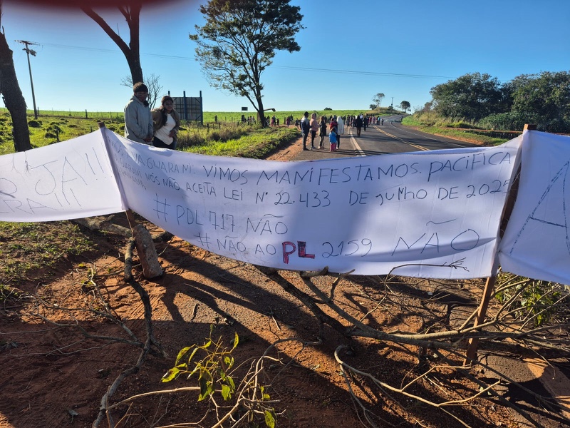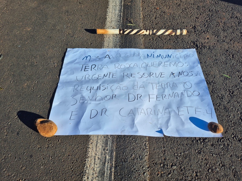 Cerca de 20 indígenas, entre eles mulheres e crianças, realizam desde às 06h desta quinta-feira (12) uma manifestação no km 556 da rodovia BR-272.