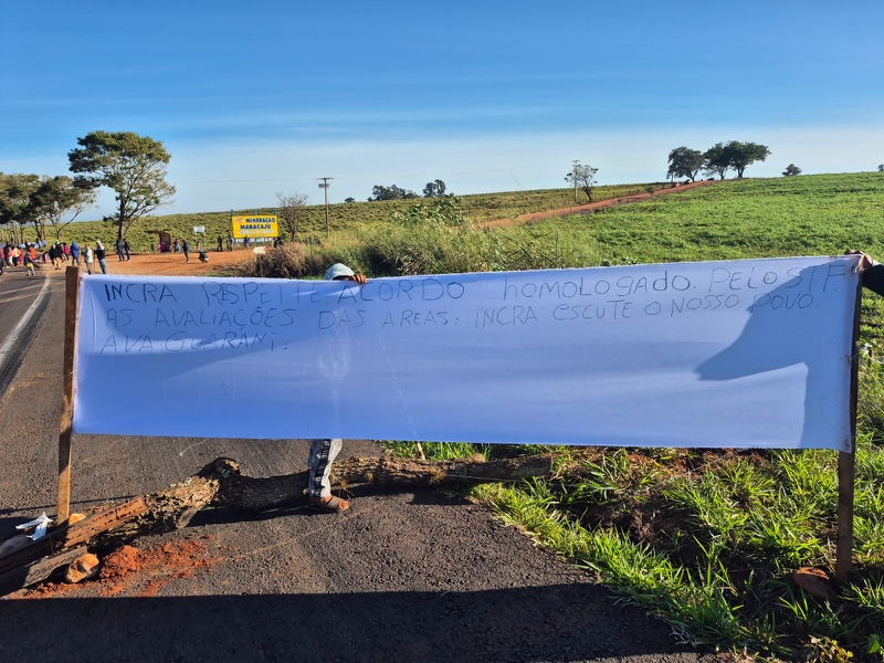 O grupo reivindica a demarcação de terras pelo Incra, tema que motivou o ato.