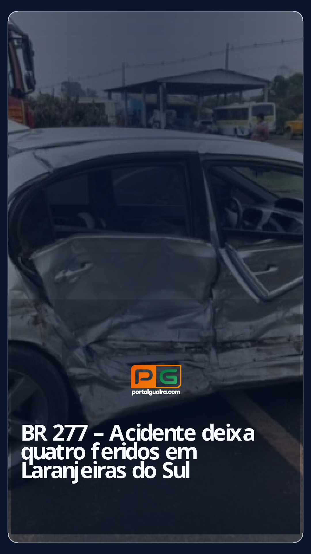 Quatro pessoas ficaram feridas em acidente no km 451 da BR-277, em Laranjeiras do Sul, no acesso ao município de Marquinho, na manhã desta segunda-feira (25).