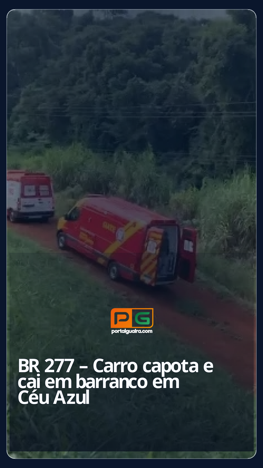 Um veículo Chevrolet Onix, que seguia de Foz do Iguaçu para Laranjeiras do Sul, capotou e despencou de um barranco com cerca de seis metros de altura. O automóvel ficou completamente destruído com o impacto da queda.
