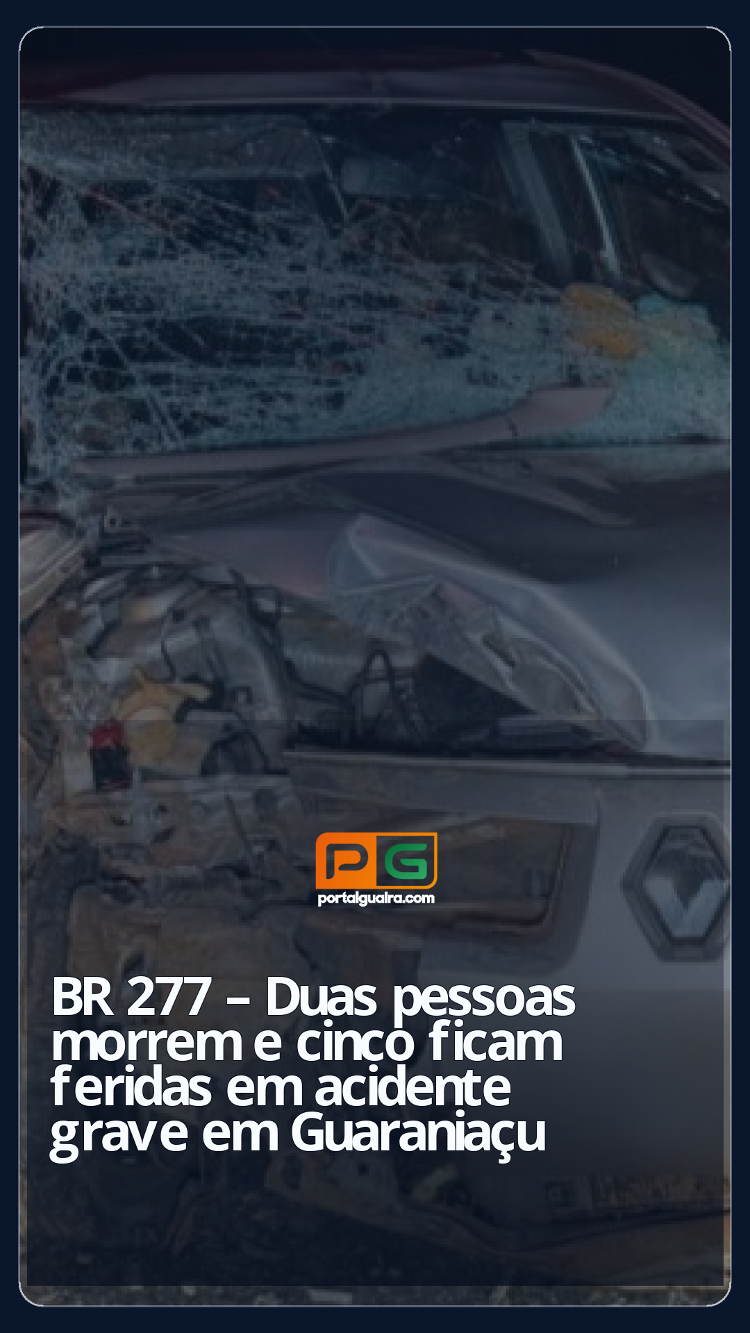 Um grave acidente foi registrado na noite de sexta-feira (17), no quilômetro 509 da BR-277, em Guaraniaçu, envolvendo um automóvel e um caminhão.