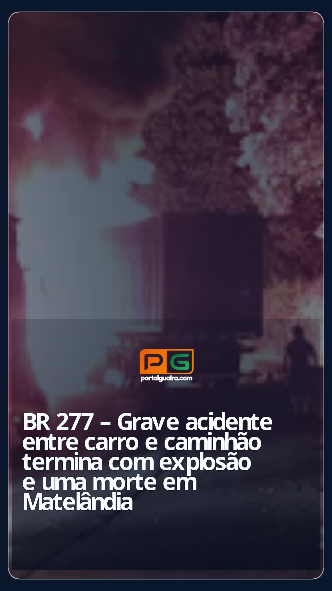 Um grave acidente registrado na noite de segunda-feira (16), mobilizou equipes de resgate no município de Matelândia, no oeste do Paraná. A colisão envolveu um carro de passeio e um caminhão e terminou em uma grande explosão, causando pânico entre motoristas que transitavam pela rodovia.