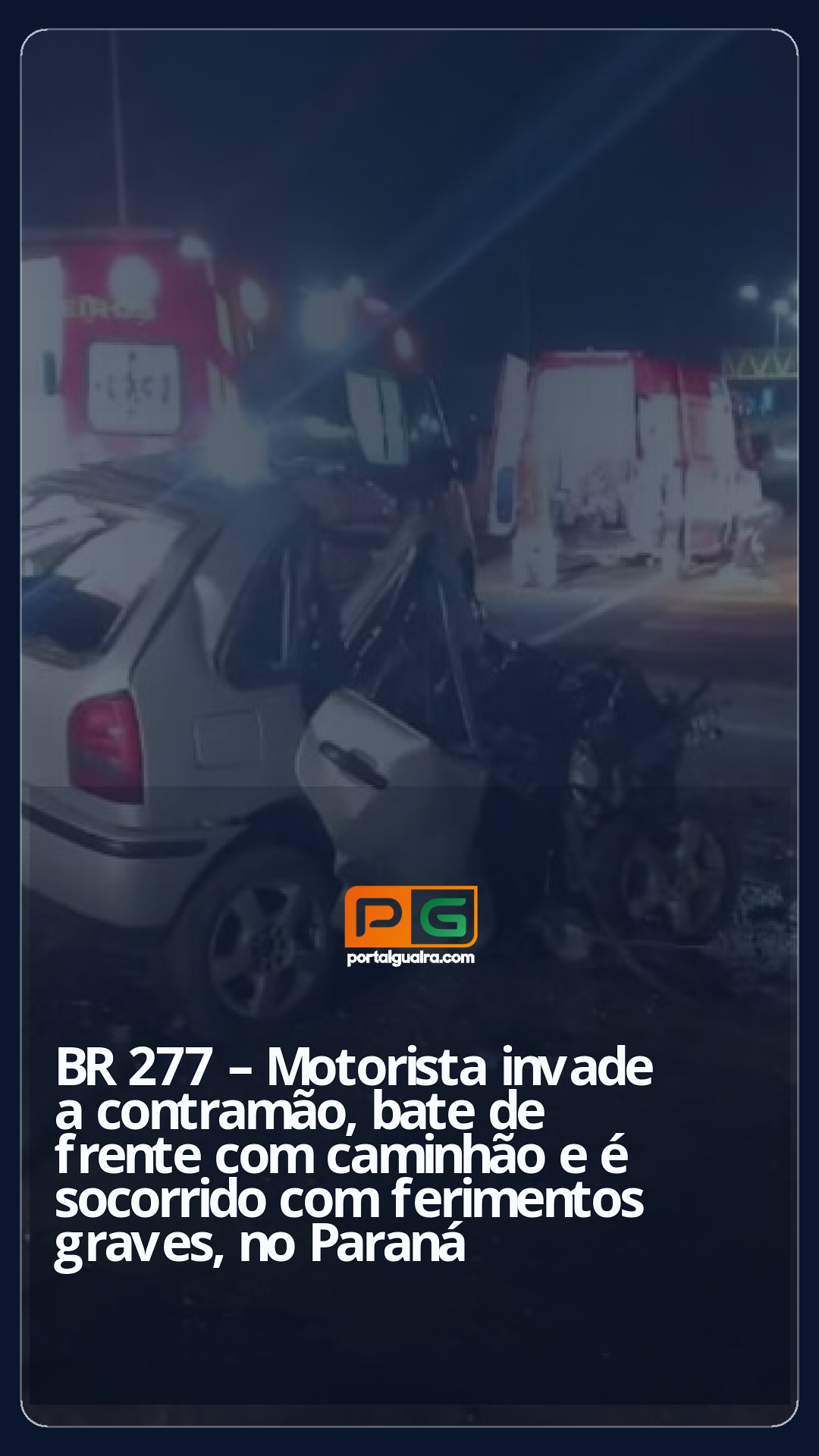 O motorista de um carro foi socorrido com ferimentos graves após invadir a pista contrária, na contramão, e bater de frente com um caminhão na BR-277 em Guarapuava, na região central do Paraná.