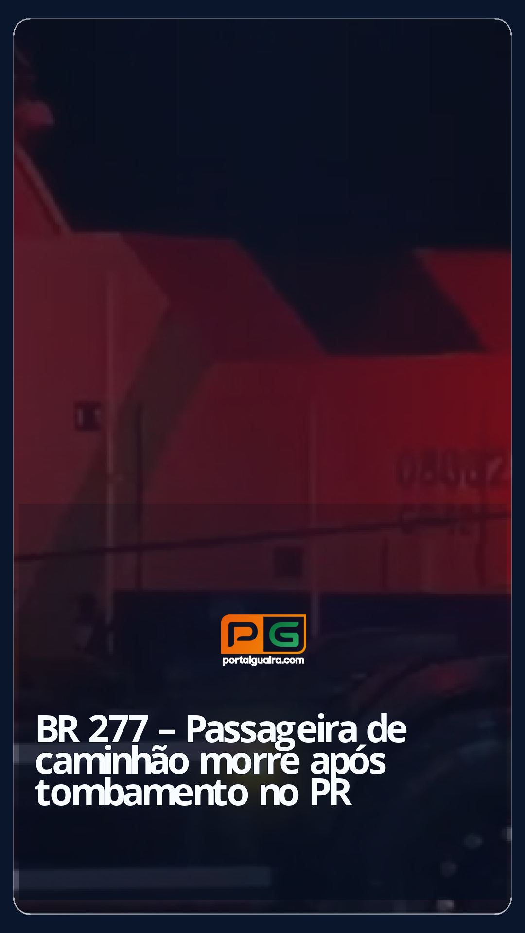 Tombamento de carreta foi registrado no quilômetro 438 da BR-277 no sábado (7), em Virmond, Região Central do Paraná. O veículo Mercedes-Benz tinha como destino à cidade da Lapa e transportava óleo vegetal, quando saiu de pista e tombou às margens da rodovia, provocando o vazamento da carga.