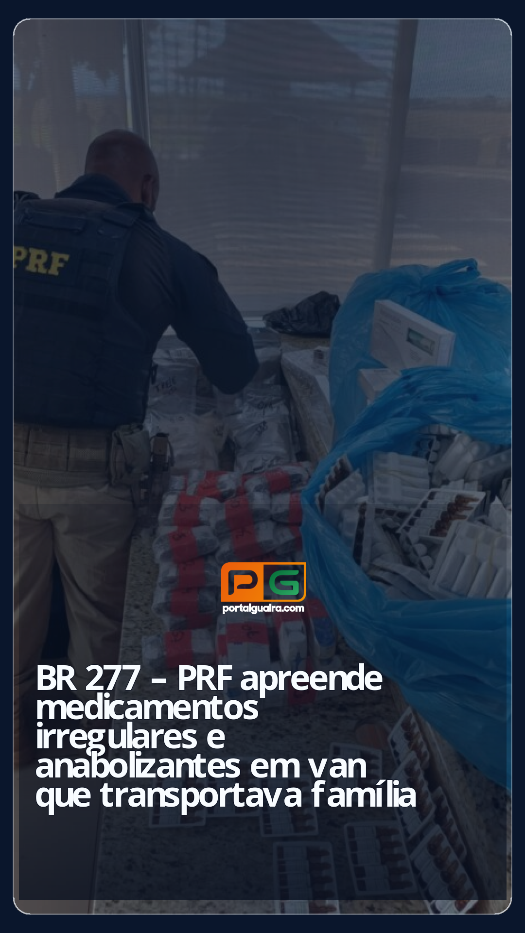 A Polícia Rodoviária Federal apreendeu diversos medicamentos para emagrecimento e ampolas de anabolizantes na tarde de sábado (14), durante ação de combate ao crime na BR-277, no quilômetro 715, em Santa Terezinha de Itaipu. O condutor estava acompanhado da esposa e de dois filhos menores de idade no momento da abordagem.