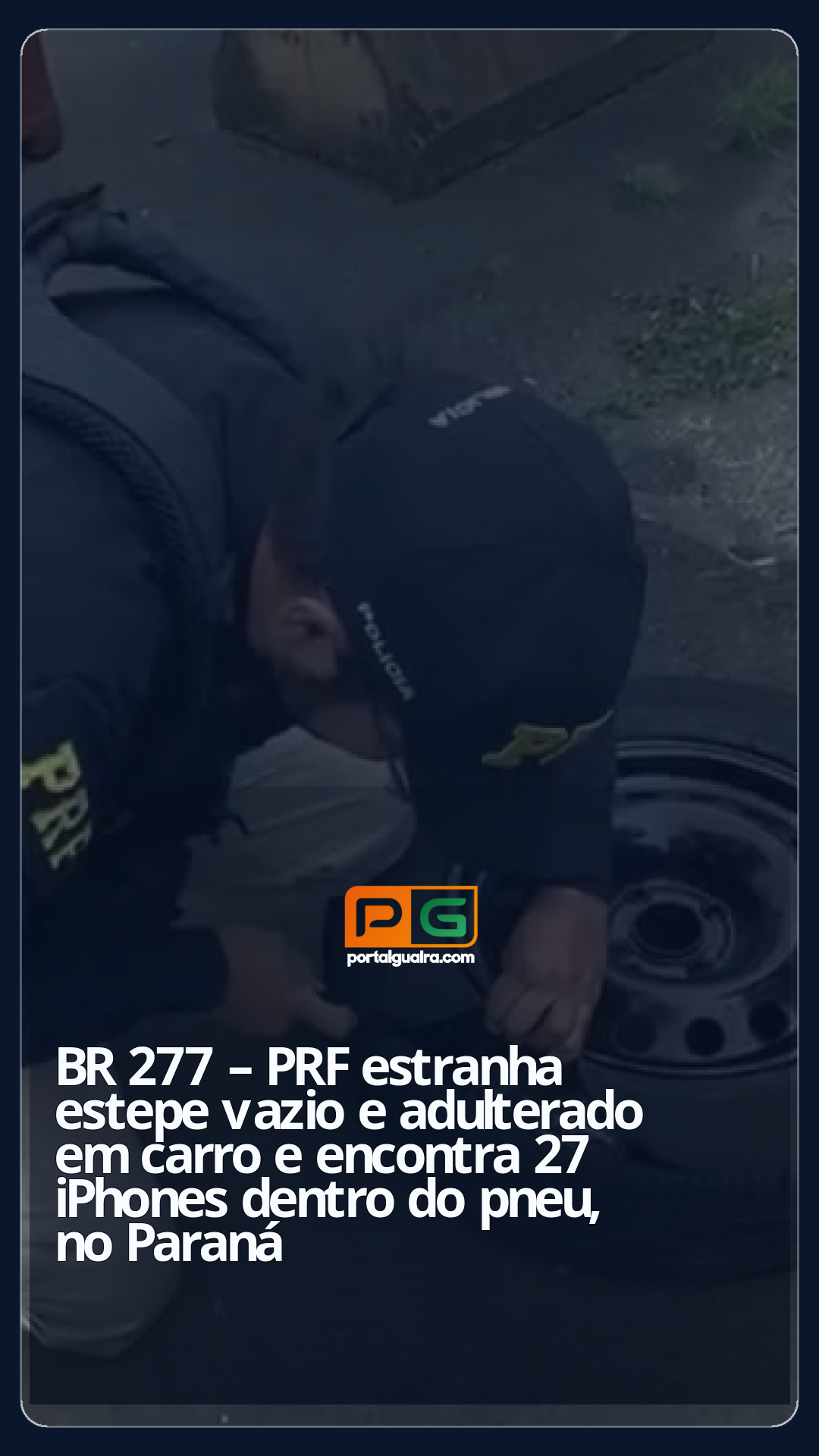 27 iPhones foram encontrados dentro do pneu estepe de um carro na BR-277 em Irati, na região central do Paraná. As informações são da Polícia Rodoviária Federal (PRF), responsável pelo flagrante.