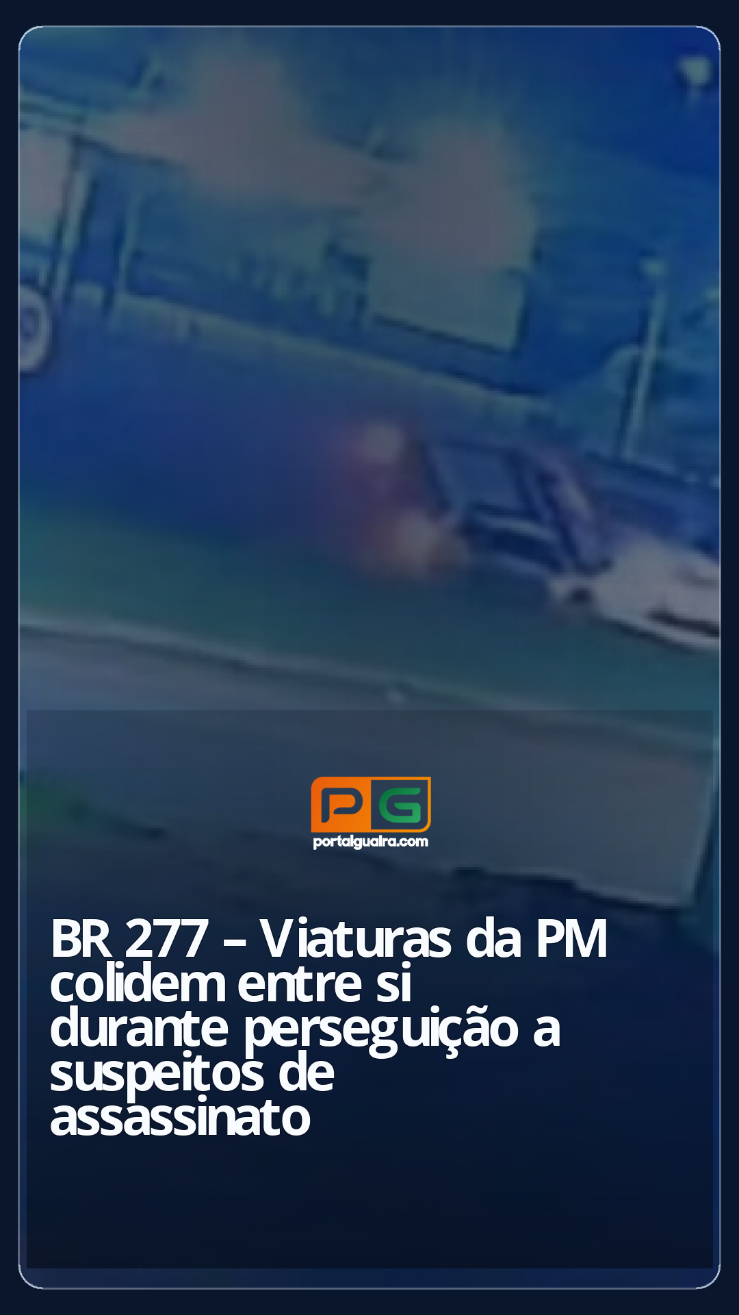 Um policial militar (PM) ficou ferido após duas viaturas da PM colidiram entre si na BR-277 em Guarapuava, na região central do Paraná, durante uma perseguição a suspeitos de assassinato.