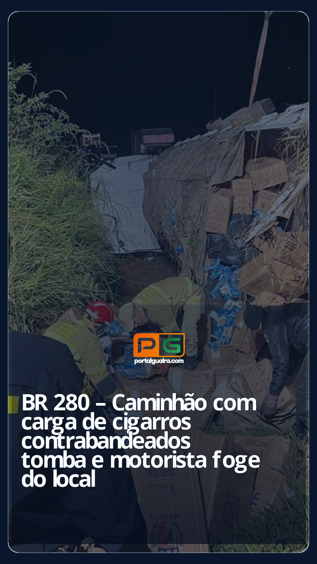 No local, os agentes encontraram um caminhão tombado às margens da rodovia. O veículo seguia no sentido de Flor da Serra para Pato Branco. Durante a vistoria, a equipe da PRF descobriu que o caminhão transportava uma carga de cigarros contrabandeados do Paraguai.