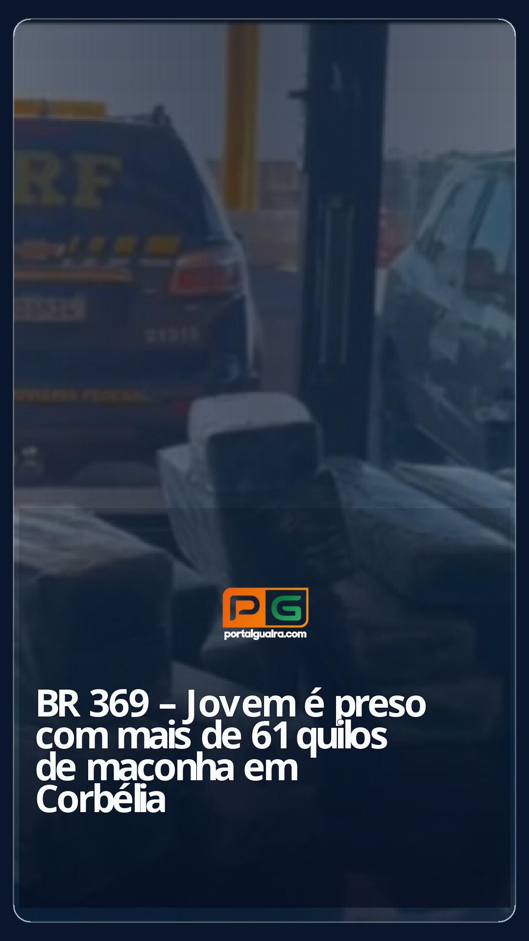 Um jovem de 29 anos foi preso transportando mais de 61 quilos de maconha na BR-369, na região de Corbélia, no Oeste do Paraná, na manhã de sábado (22).