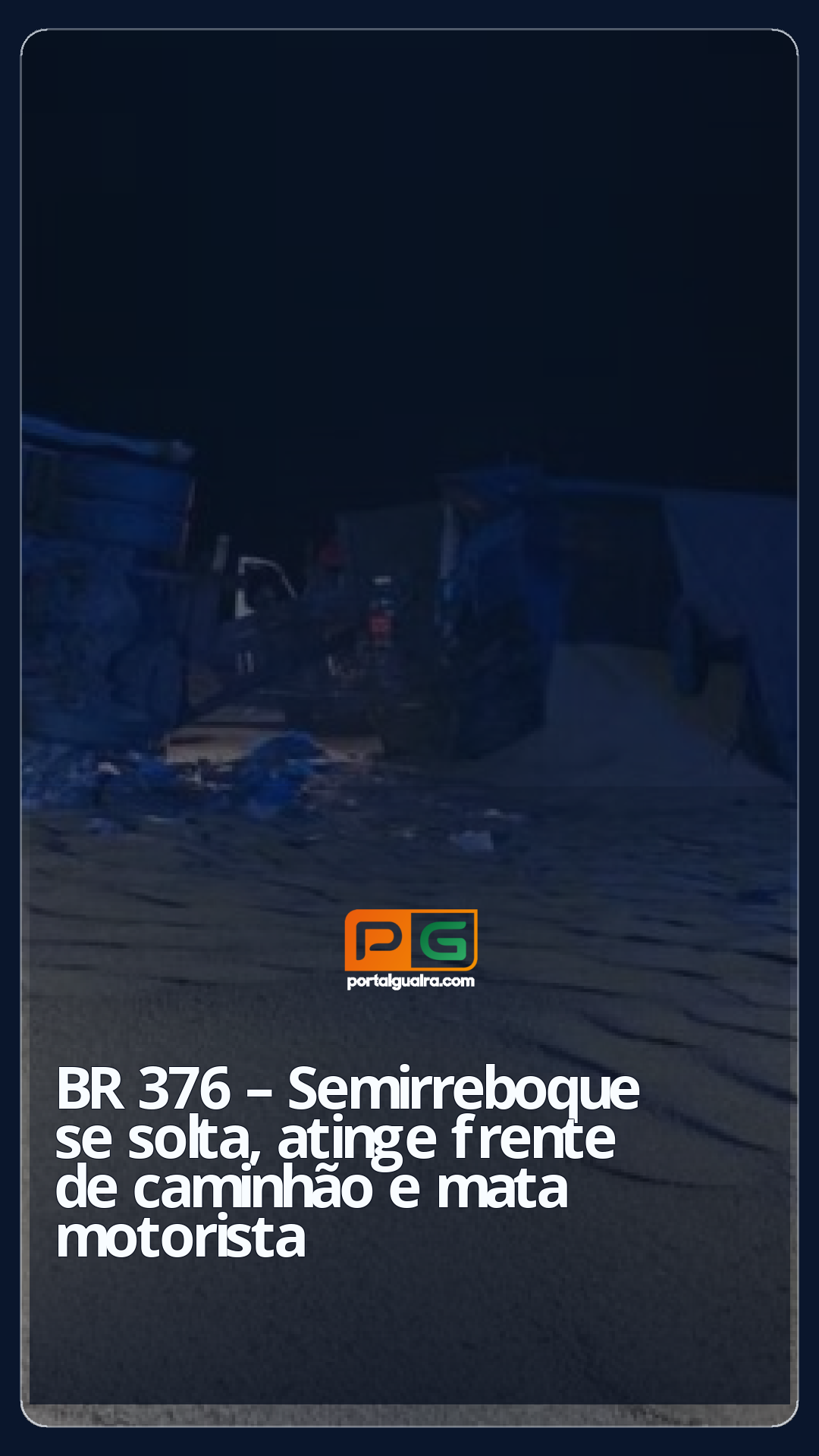 Um caminhoneiro de 44 anos morreu na noite de quinta-feira (8) após o semirreboque de um caminhão que trafegava no sentido contrário se soltar e atingir a frente do veículo que ele dirigia na BR-376 em Ortigueira, nos Campos Gerais do Paraná.