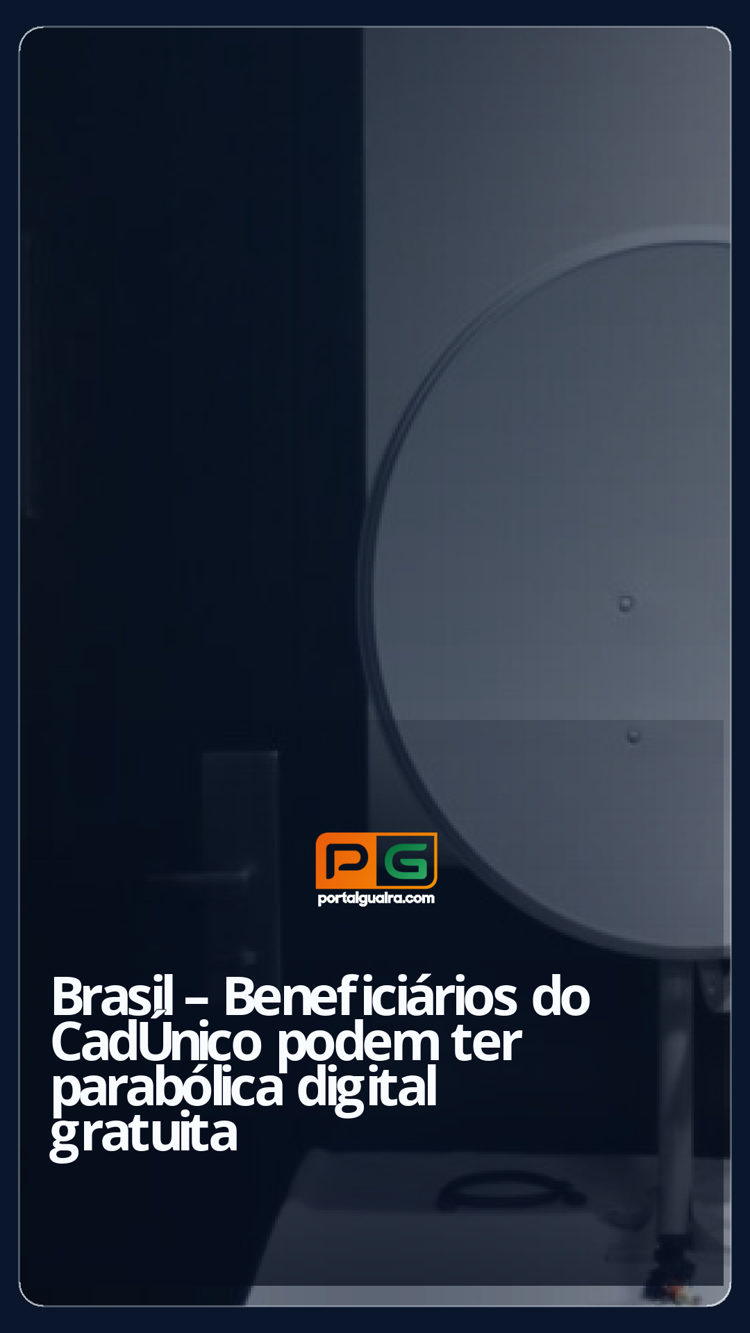 Famílias de menor renda inscritas no CadÚnico têm até o dia 30 de junho próximo para pedir instalação gratuita da nova parabólica digital. A mudança é necessária para não perder o acesso à TV aberta, já que o sinal da TV via parabólica tradicional está sendo desligado em todo o país.