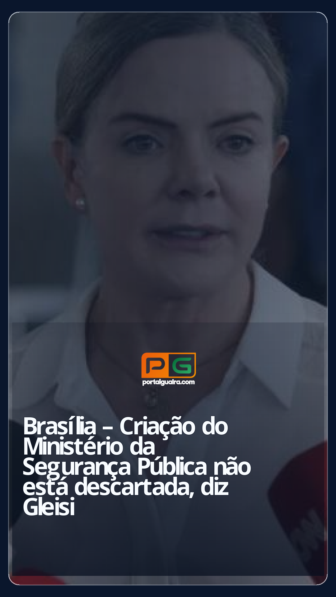 Gleisi reafirmou que o tema da segurança é prioridade do Executivo e disse esperar “celeridade” do Congresso. A proposta está em análise em uma comissão especial na Câmara dos Deputados e, depois, ainda precisará passar pelo plenário.