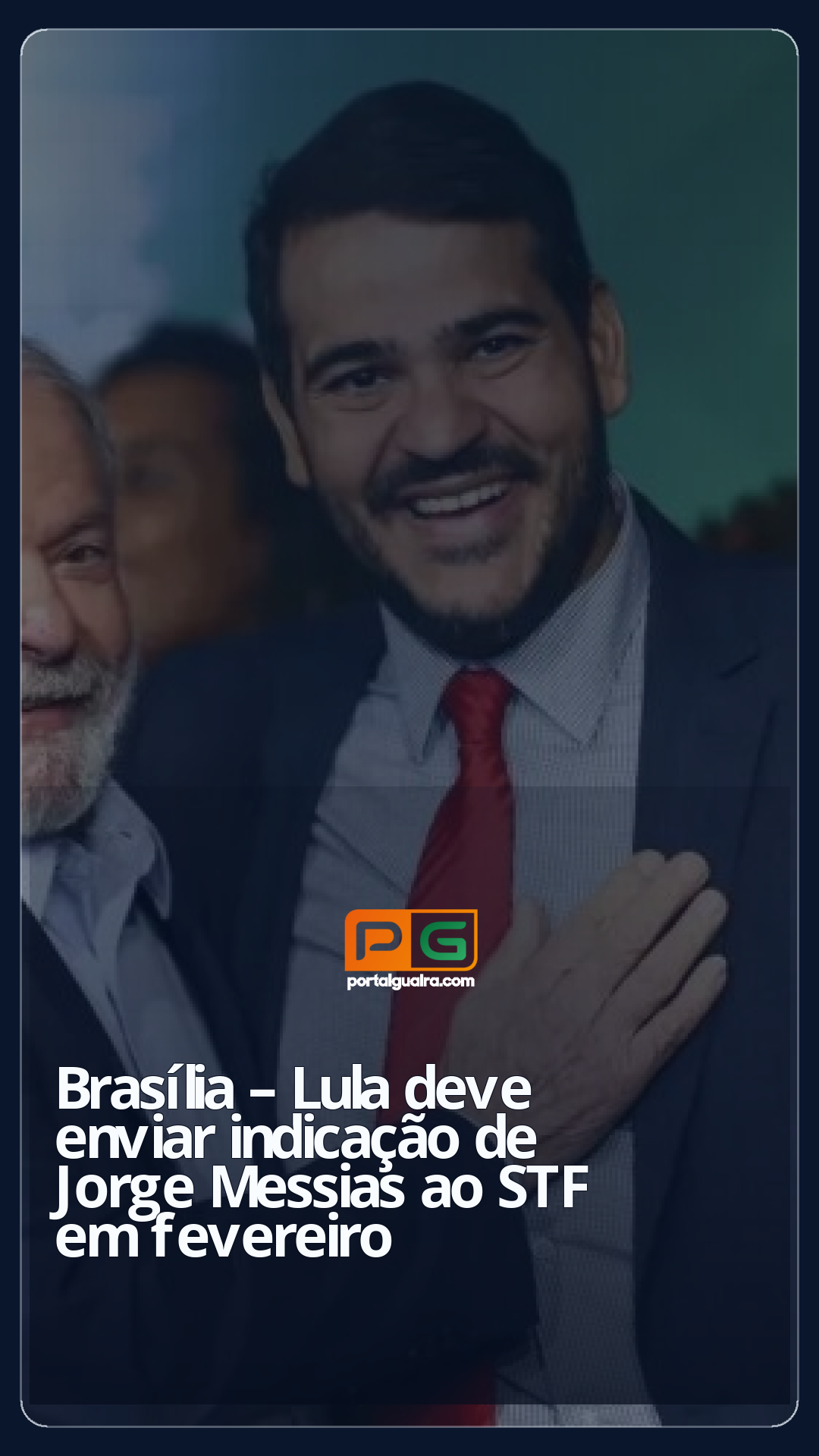 O presidente Luiz Inácio Lula da Silva (PT) deve enviar, em fevereiro, a mensagem presidencial ao Senado com a indicação de Jorge Messias para ministro do STF (Supremo Tribunal Federal).
