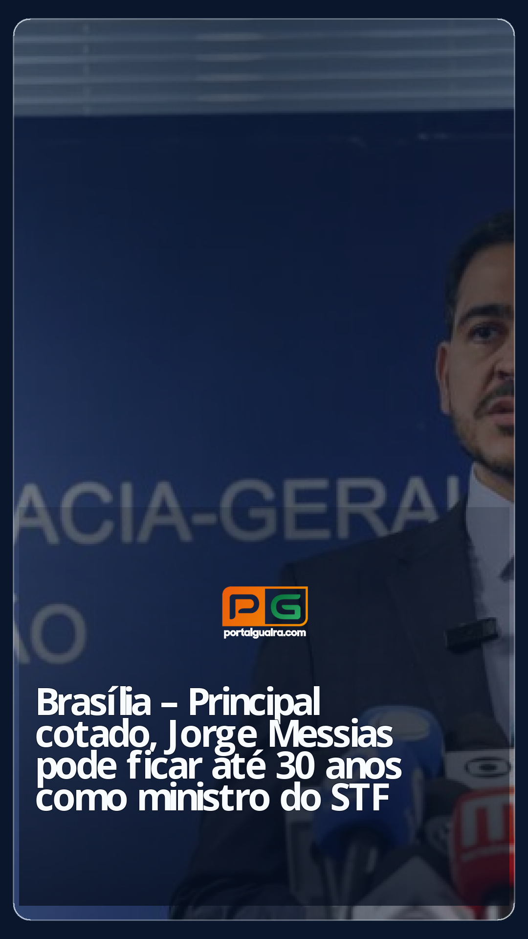 O ministro da AGU (Advocacia-Geral da União), Jorge Messias, poderá permanecer até 30 anos no STF (Supremo Tribunal Federal) caso seja indicado pelo presidente Luiz Inácio Lula da Silva (PT) para ocupar uma cadeira na Corte.
