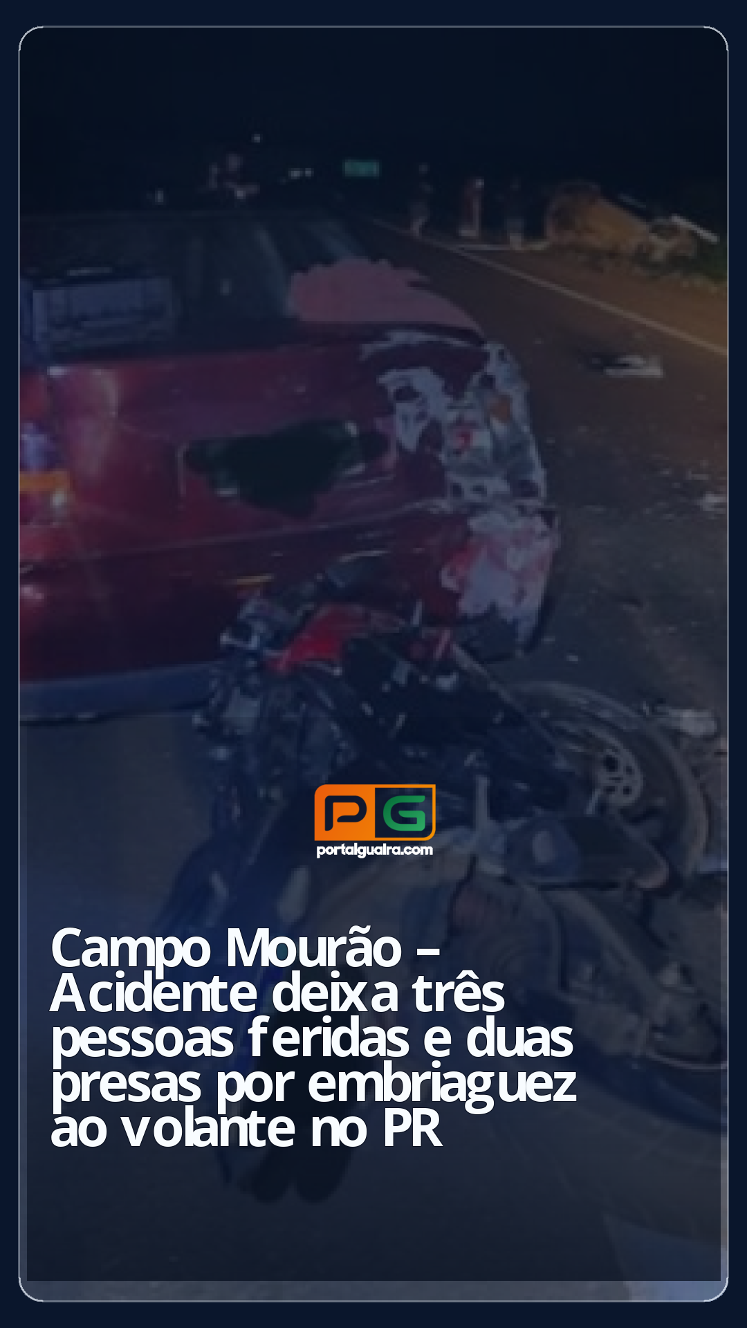 Três pessoas ficaram feridas e duas foram presas por embriaguez ao volante após acidente no sábado (15) na PRc-158, em Campo Mourão, no Centro Ocidental do Paraná.