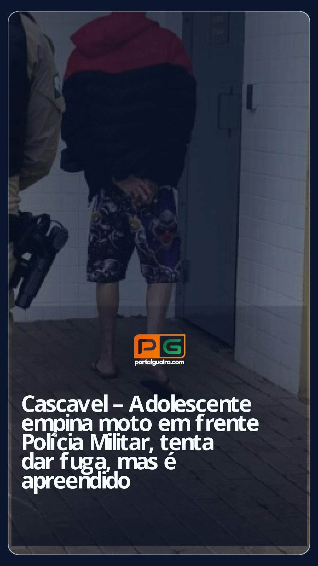 O adolescente foi encaminhado para a delegacia de Cascavel e a moto foi apreendida e levada ao pátio do Detran, pois possuía pendências na documentação. O jovem não possui CNH (Carteira Nacional de Habilitação) e não poderia estar pilotando o veículo.