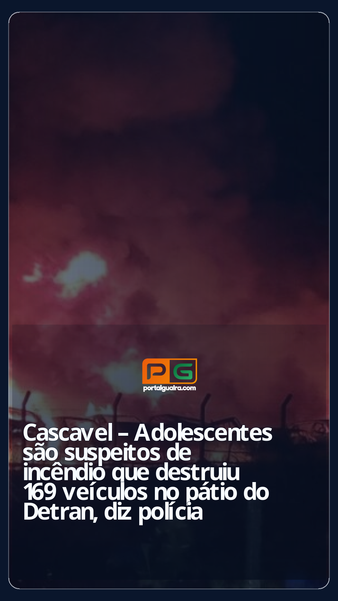 Investigações conduzidas pela Polícia Civil indicaram que quatro menores de idade foram os responsáveis por iniciar um incêndio criminoso que destruiu 169 veículos no pátio do Departamento Estadual de Trânsito (Detran) em Cascavel, no oeste do Paraná.