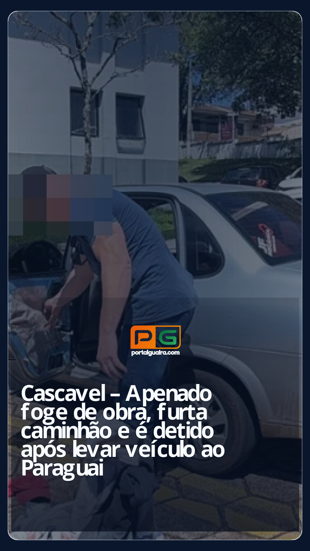 Um homem apenado foi detido na manhã de quarta-feira (14) após fugir do local onde trabalhava em um canteiro de obras, em Cascavel, e participar do furto de um caminhão avaliado em cerca de R$ 200 mil. O caso está sendo investigado pela Delegacia de Furtos e Roubos de Veículos (DFRV), que coordena a ação policial.