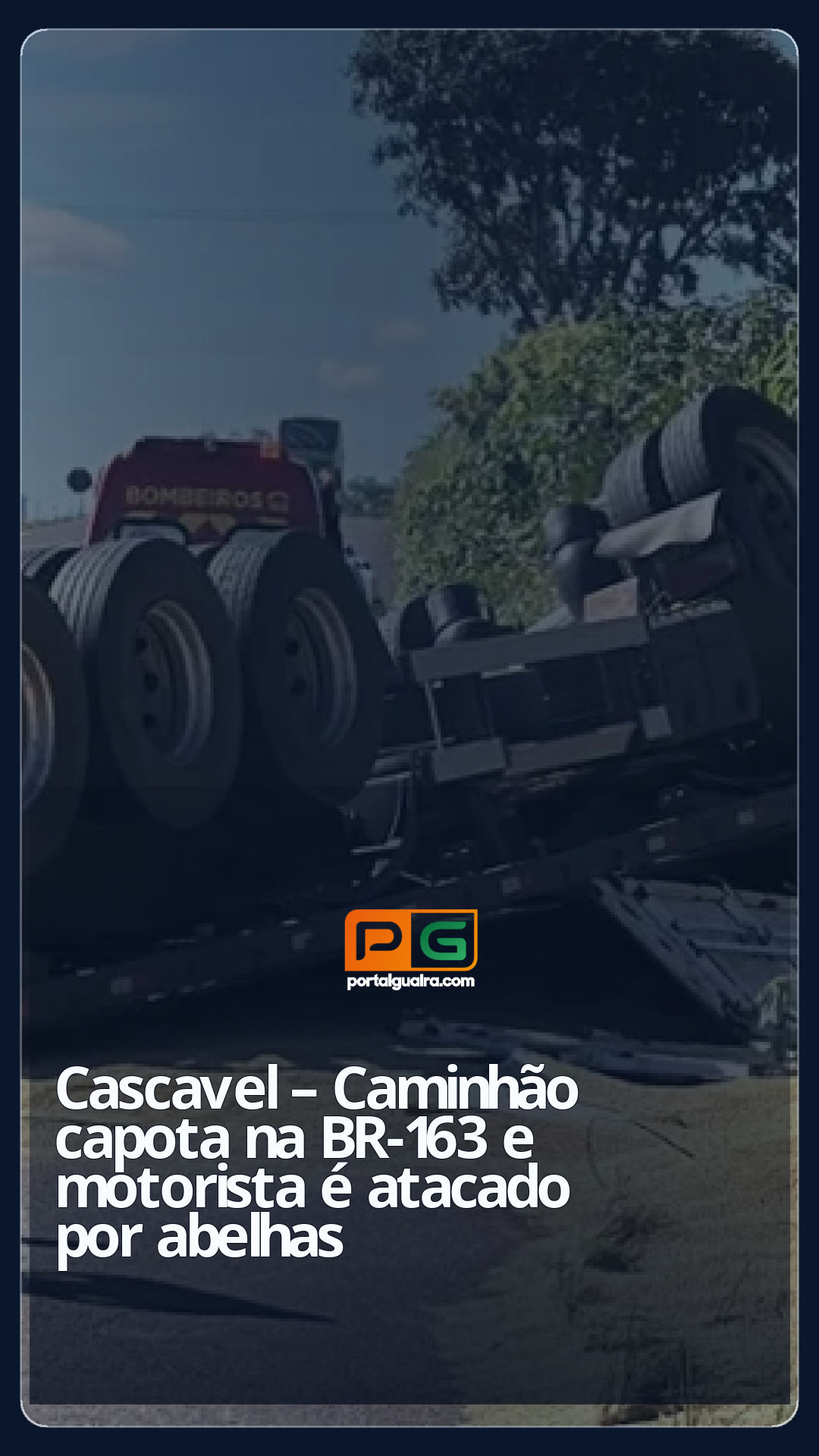 Durante o acidente, o caminhão atingiu uma caixa de abelhas que estava próxima à rodovia. Com o impacto, o enxame se espalhou e atacou o caminhoneiro.