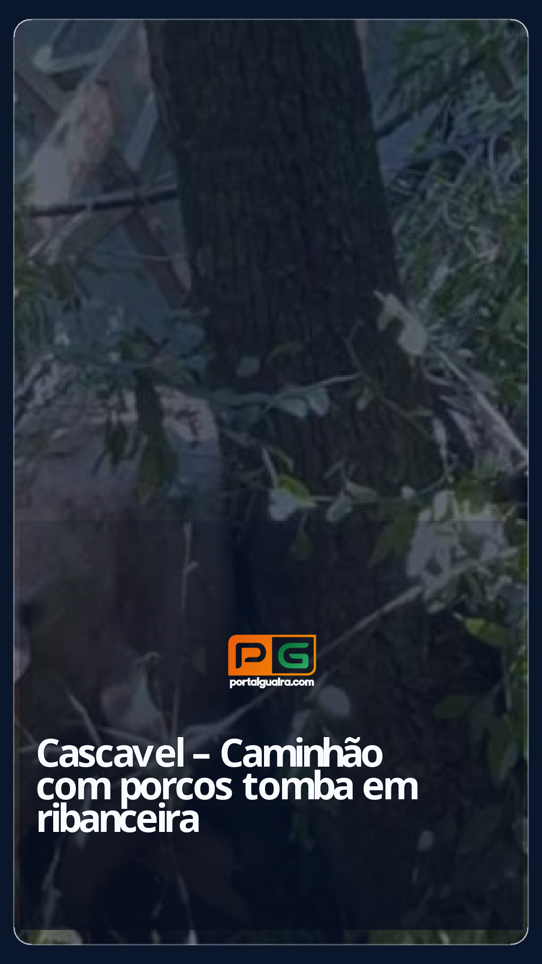 Um caminhão que transportava suínos tombou em uma ribanceira na tarde de sexta-feira (19), às margens da PR-180, no Distrito de Rio do Salto, em Cascavel.