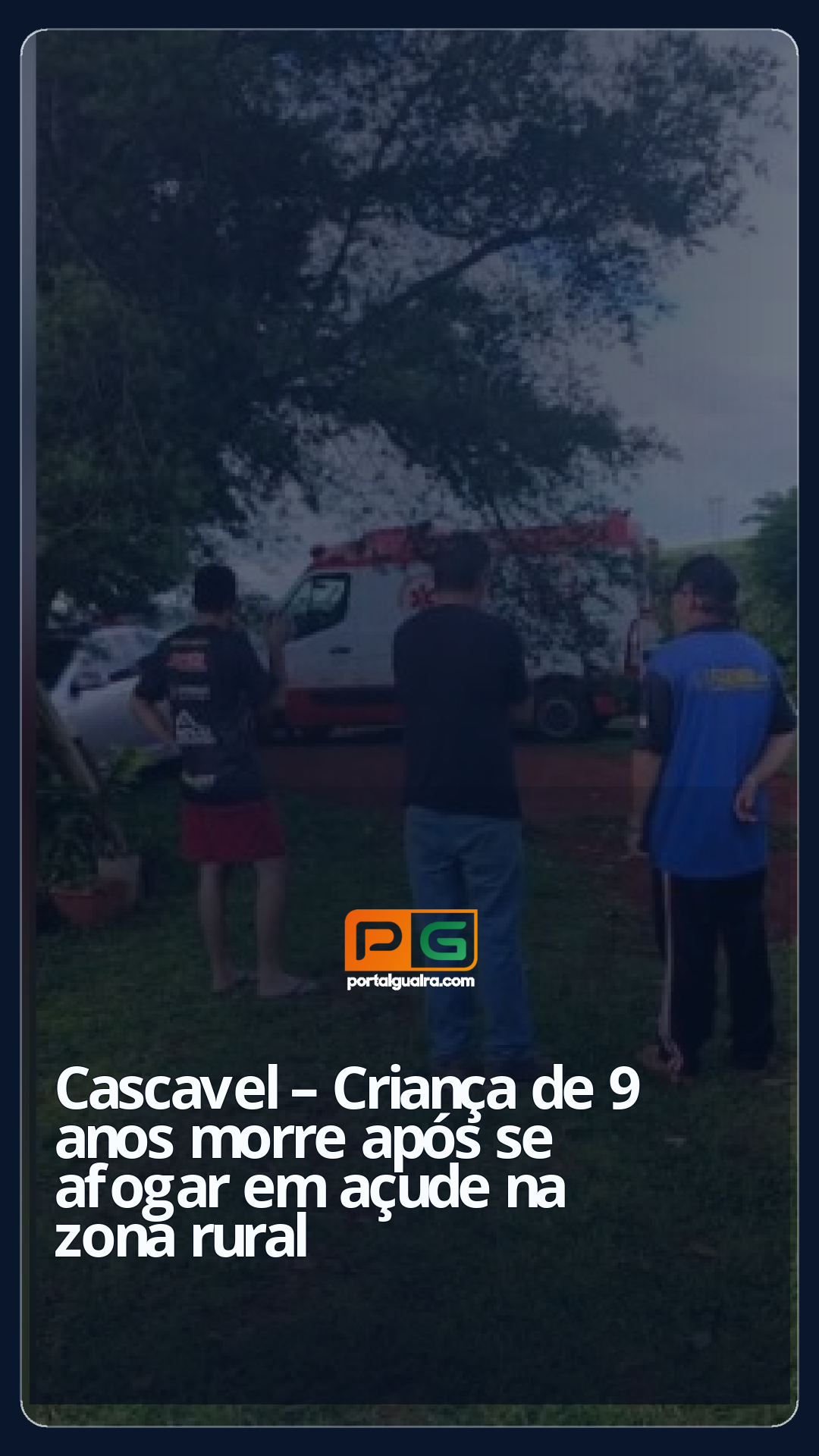 Criança de 9 anos morreu após se afogar em açude na Linha Gaipa, no distrito de São João D’Oeste, em Cascavel. A vítima foi localizada na tarde de domingo (16).
