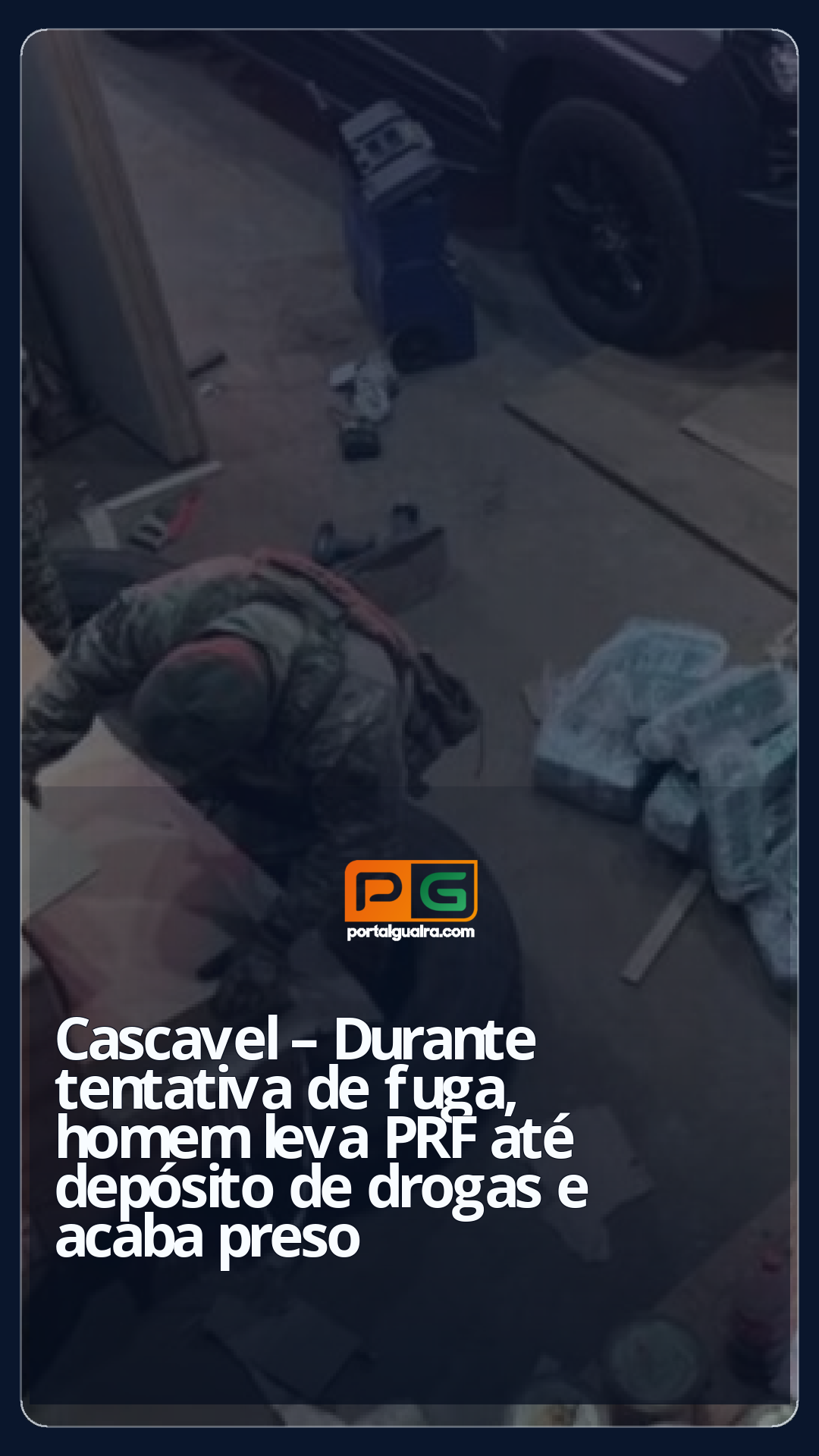 Um homem de 30 anos foi preso depois de tentar fugir de uma abordagem da Polícia Rodoviária Federal (PRF), em Cascavel. Ele foi encontrado em um barracão usado para depósito de droga. No total, 1,9 tonelada de maconha foi apreendida.