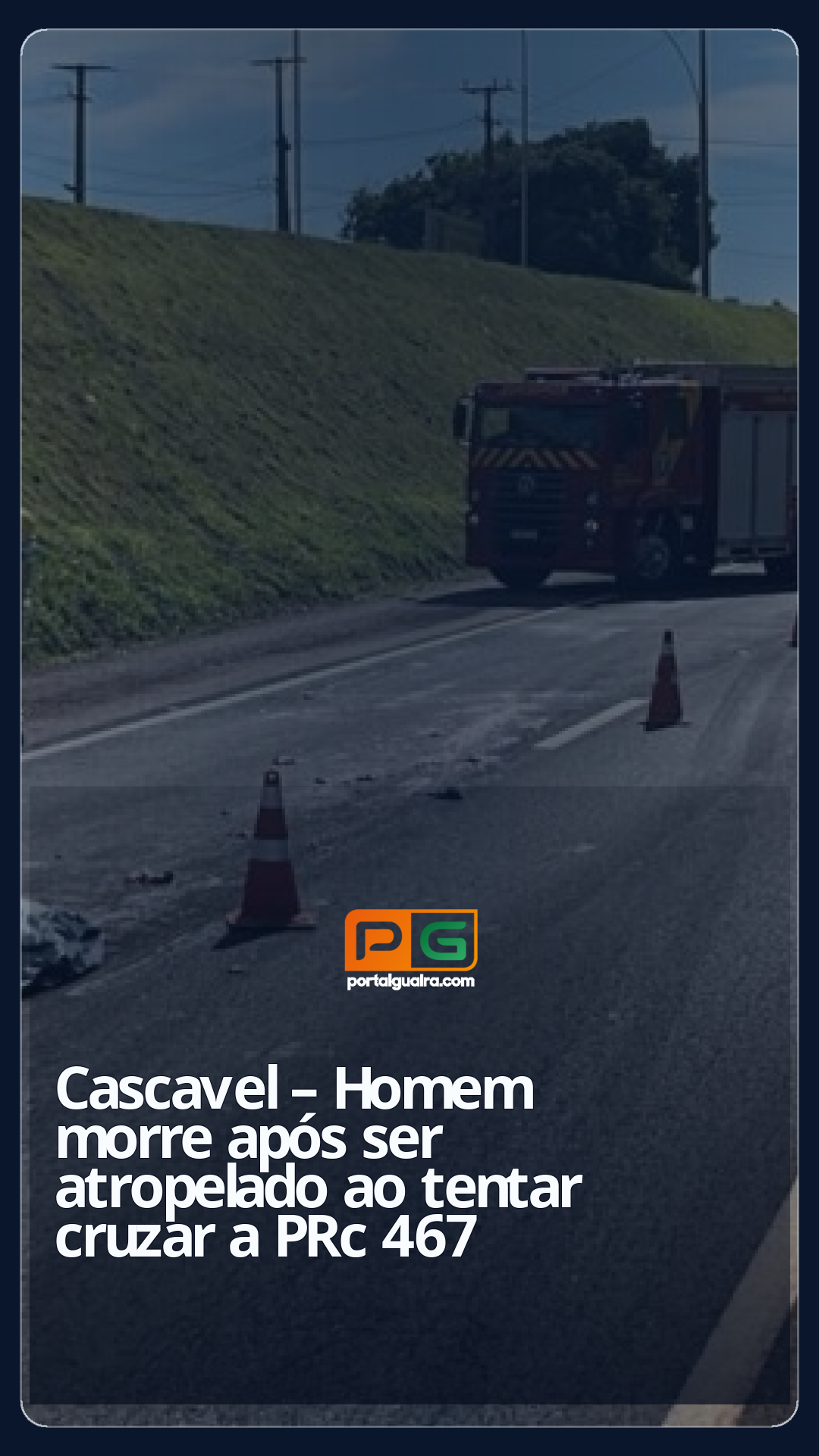 Um atropelamento registrado na manhã de domingo (7) resultou na morte de um homem na PRC-467, em Cascavel. A vítima tentava cruzar a rodovia quando foi atingida por um caminhão que seguia pela via.