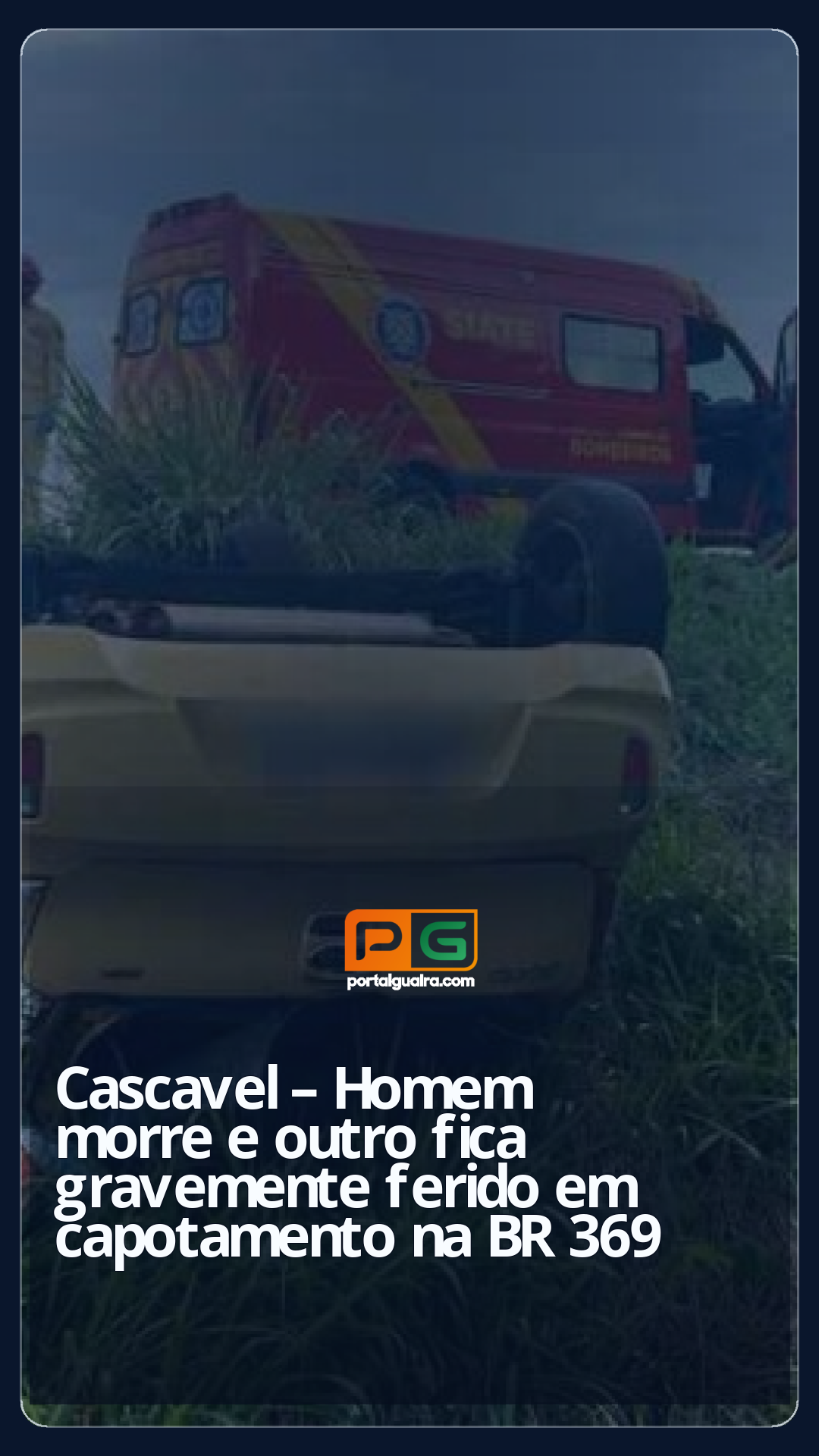 O Tenente Vitor Koerich, do Corpo de Bombeiros, explicou que “O capotamento na BR-369, entre Cascavel e Corbélia, envolveu um carro com duas pessoas. Quando as equipes chegaram, uma das vítimas já estava em óbito e a outra foi encontrada afastada do veículo, com ferimentos graves e inconsciente”.