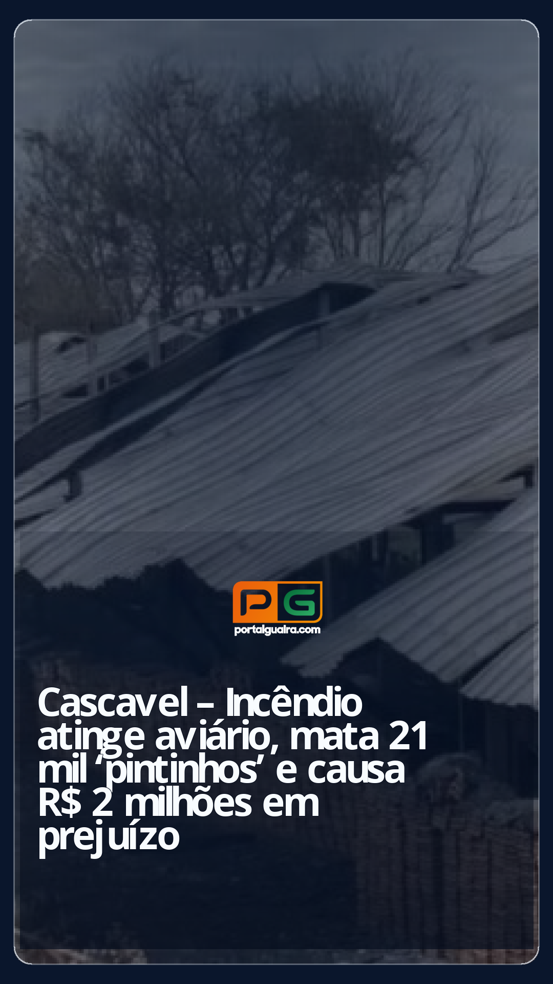 Um incêndio de grandes proporções destruiu parte de um aviário em uma área rural próxima à BR-467, entre Cascavel e Toledo, no oeste do Paraná, na noite de segunda-feira (14).