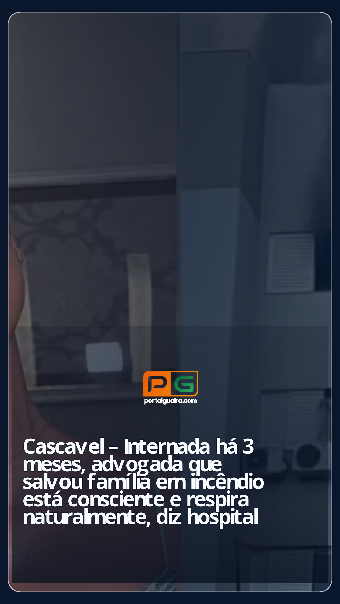 Juliane Vieira, de 29 anos, está consciente e respirando naturalmente. A advogada está internada no Hospital Universitário (HU) de Londrina, no norte do Paraná, desde o dia 15 de outubro de 2025, quando ficou gravemente ferida ao salvar a mãe e o primo de 4 anos durante um incêndio no prédio onde moravam, no centro de Cascavel.