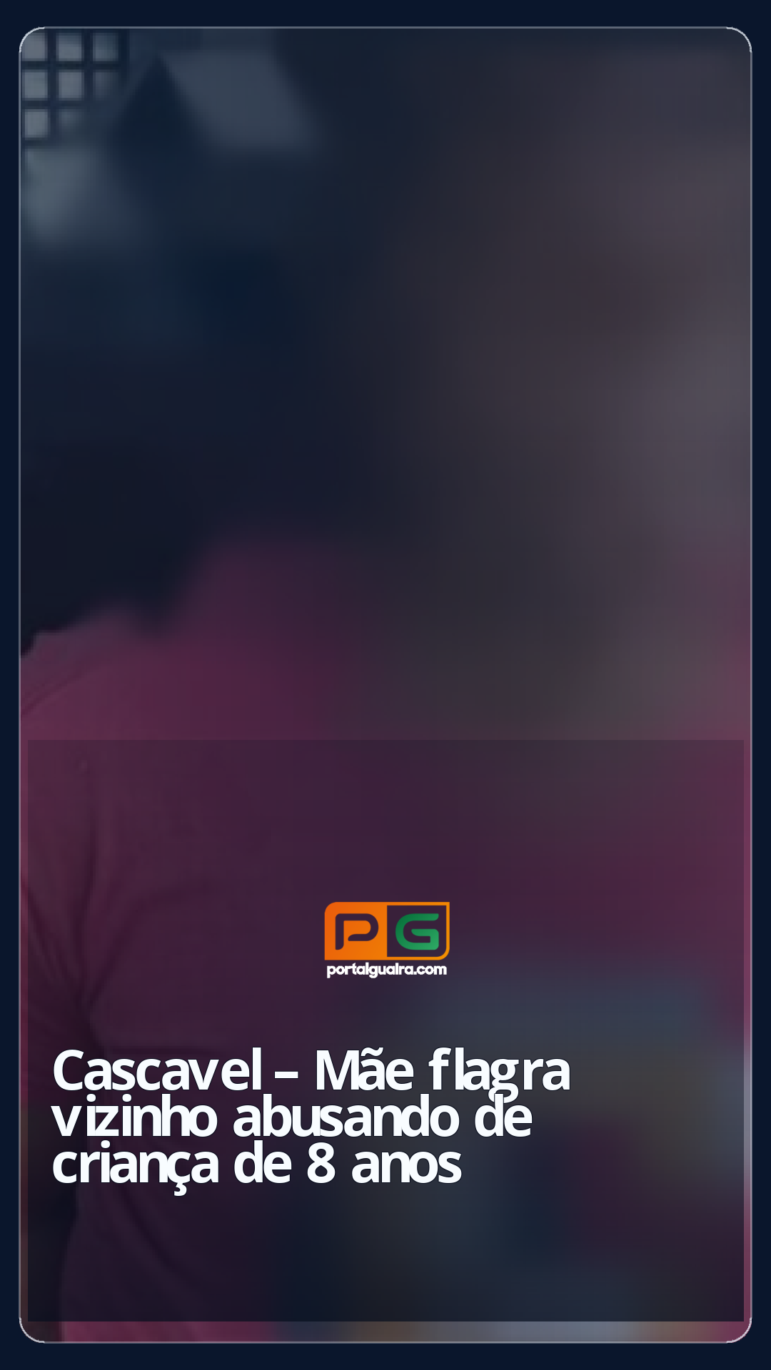 Um homem, de aproximadamente 30 anos, foi preso em flagrante no sábado (6) por suspeita de abuso de vulnerável, em Cascavel, no oeste do Paraná. O indivíduo foi flagrado pela mãe de uma criança, de 8 anos, que estava sendo abusada no bairro 14 de Novembro. Imediatamente a mulher acionou a Guarda Municipal que encaminhou o rapaz para a delegacia da Polícia Civil do Paraná (PCPR).
