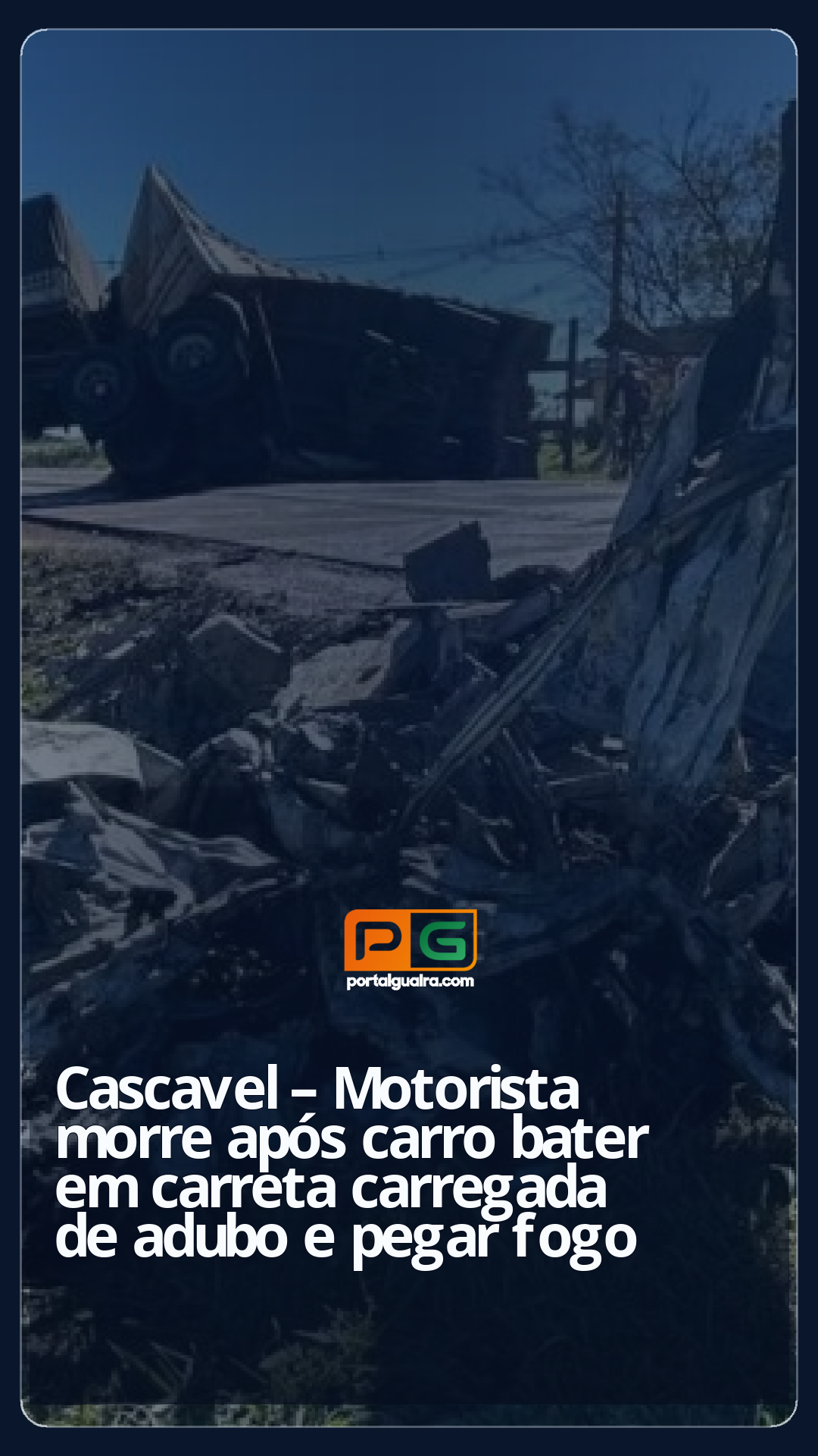 O motorista de um carro morreu ao se envolver em um acidente em Cascavel, no domingo (11). O automóvel pegou fogo depois de bater contra uma carreta carregada de adubo.