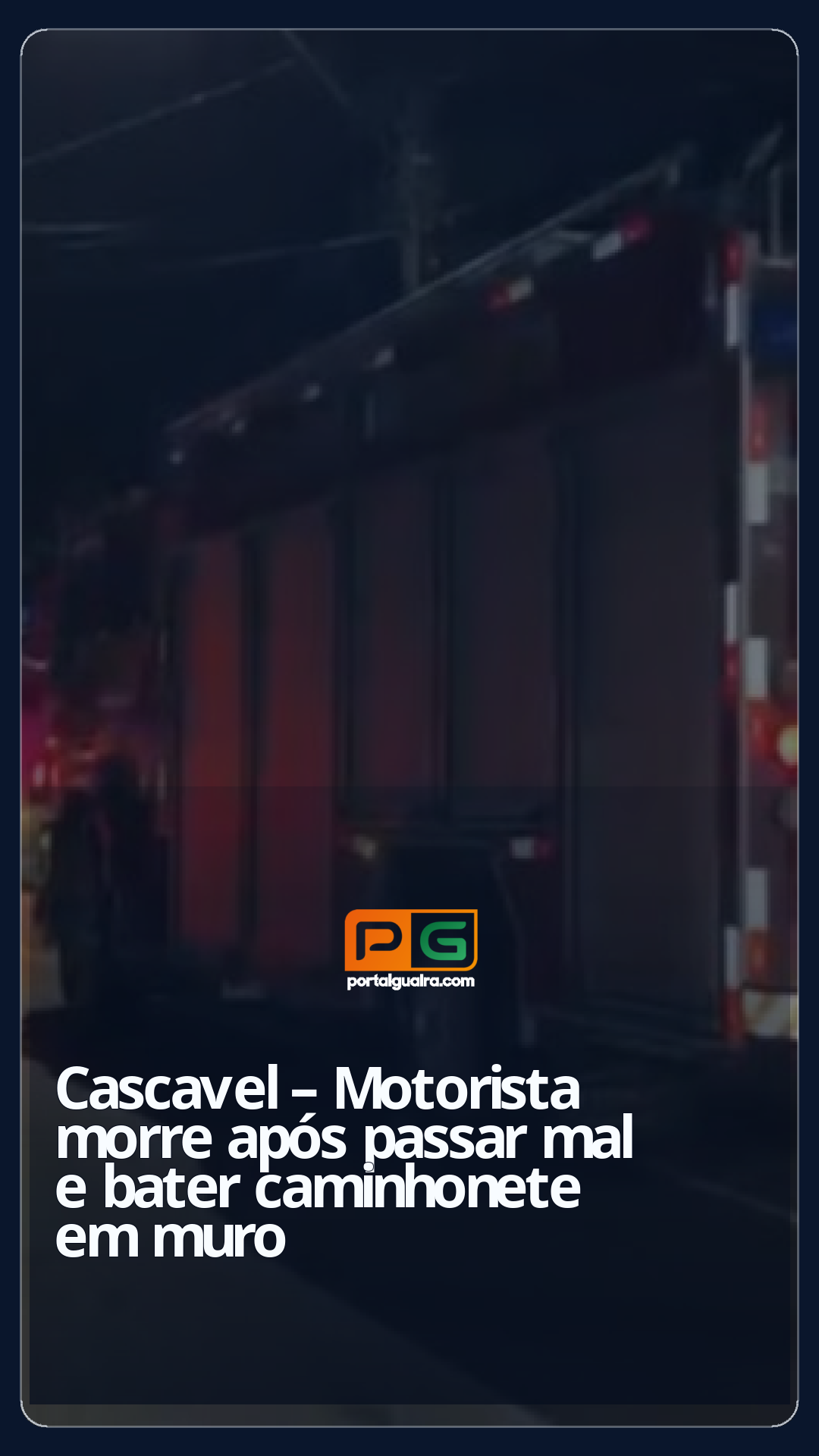 Um motorista de 37 anos morreu após sofrer um mal súbito e bater a caminhonete que dirigia contra um poste e o muro de uma casa, na madrugada de quarta-feira (19), no bairro Consolata, em Cascavel.