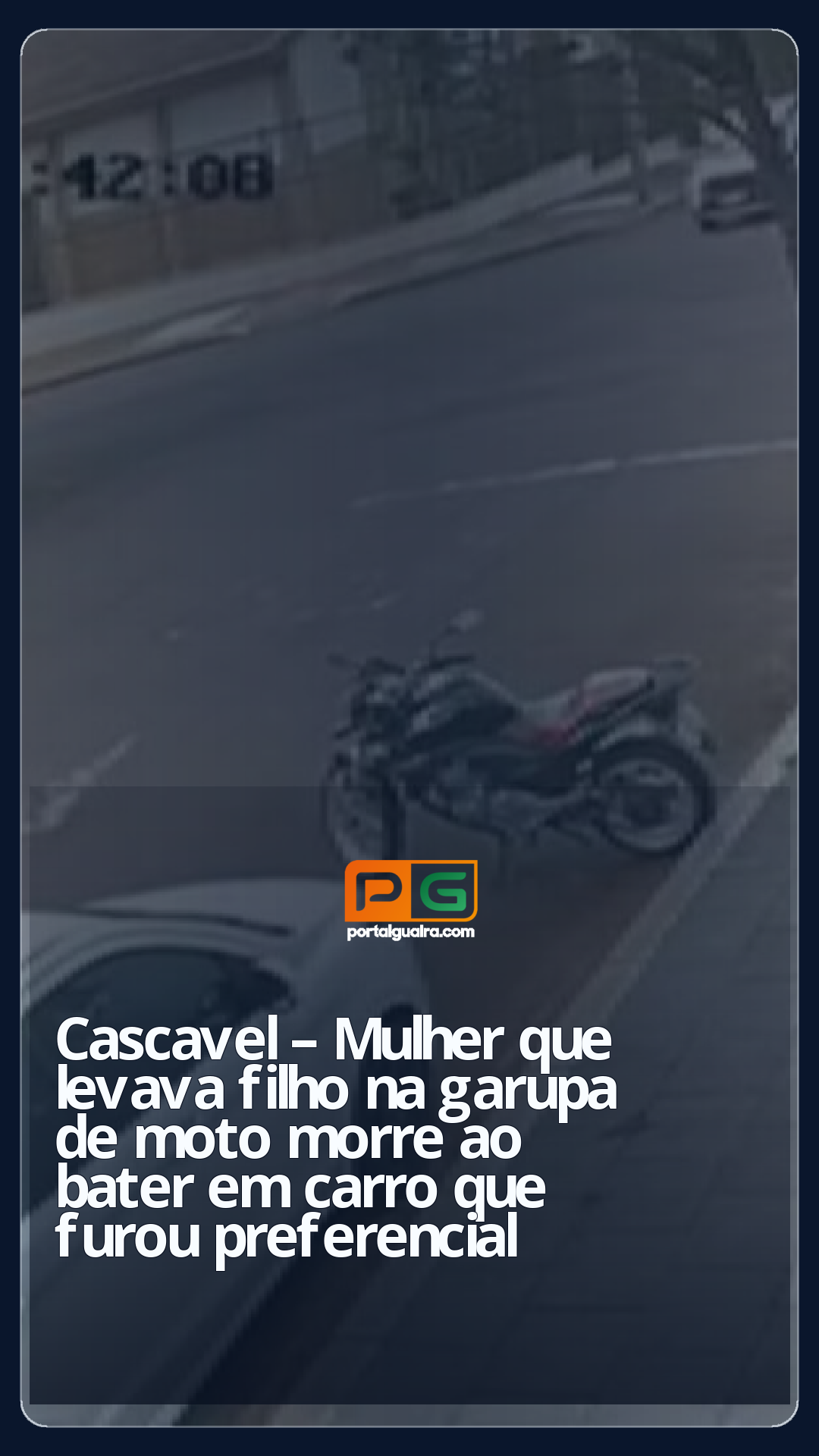 Imagens de câmera de segurança mostram o momento em que o a moto atinge o carro. Com o impacto, as vítimas foram arremessadas.