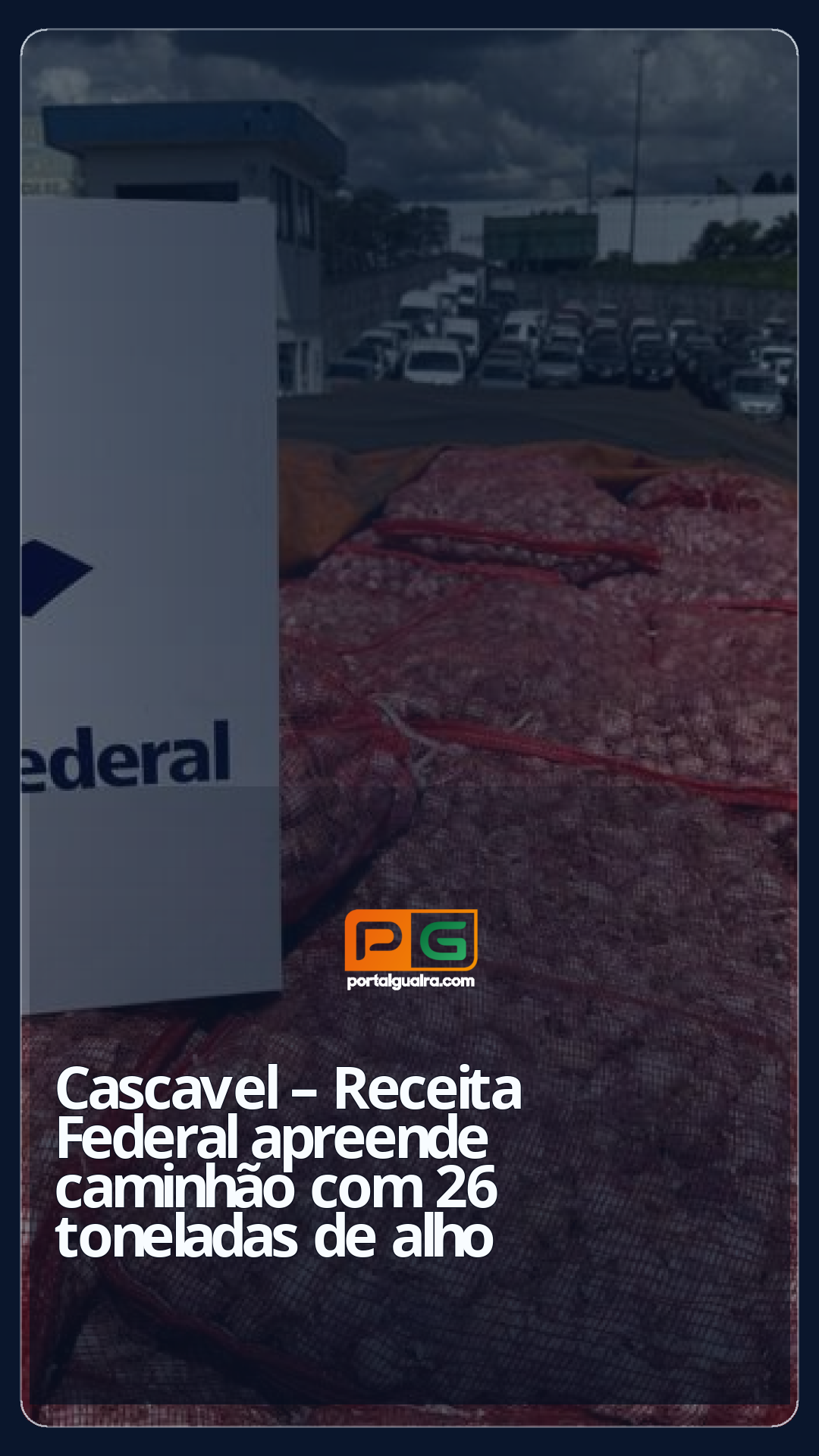 Na quinta-feira (9), uma equipe da Receita Federal em Cascavel, durante operações rotineiras realizadas nas estradas da região, abordou para fiscalização um conjunto caminhão trator e reboque, na BR 277. Foi identificado o transporte de alho com indícios de origem argentina, ilegalmente o introduzido no Brasil.