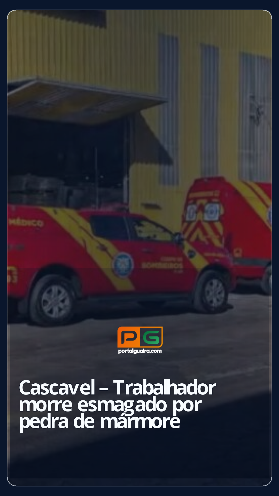 Um trabalhador morreu esmagado após ser atingido por uma pedra de mármore na cabeça, no Centro de Cascavel. A situação ocorreu em uma marmoraria na tarde de quinta-feira (25), na Rua Engenheiro Rebouças.
