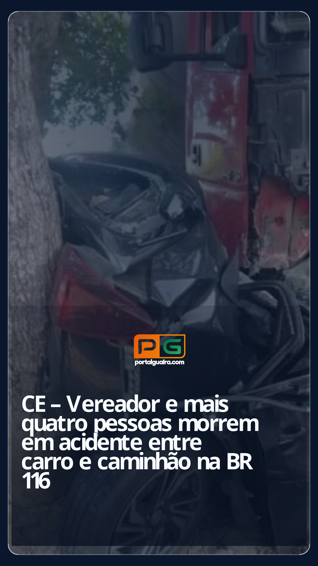A colisão foi entre os distritos de Timbaúba e Pitombeiras, em Cascavel. Outras quatro pessoas morreram, sendo duas mulheres e dois homens. Em imagens feitas no local, é possível ver que o carro foi arremessado contra uma árvore após a colisão.