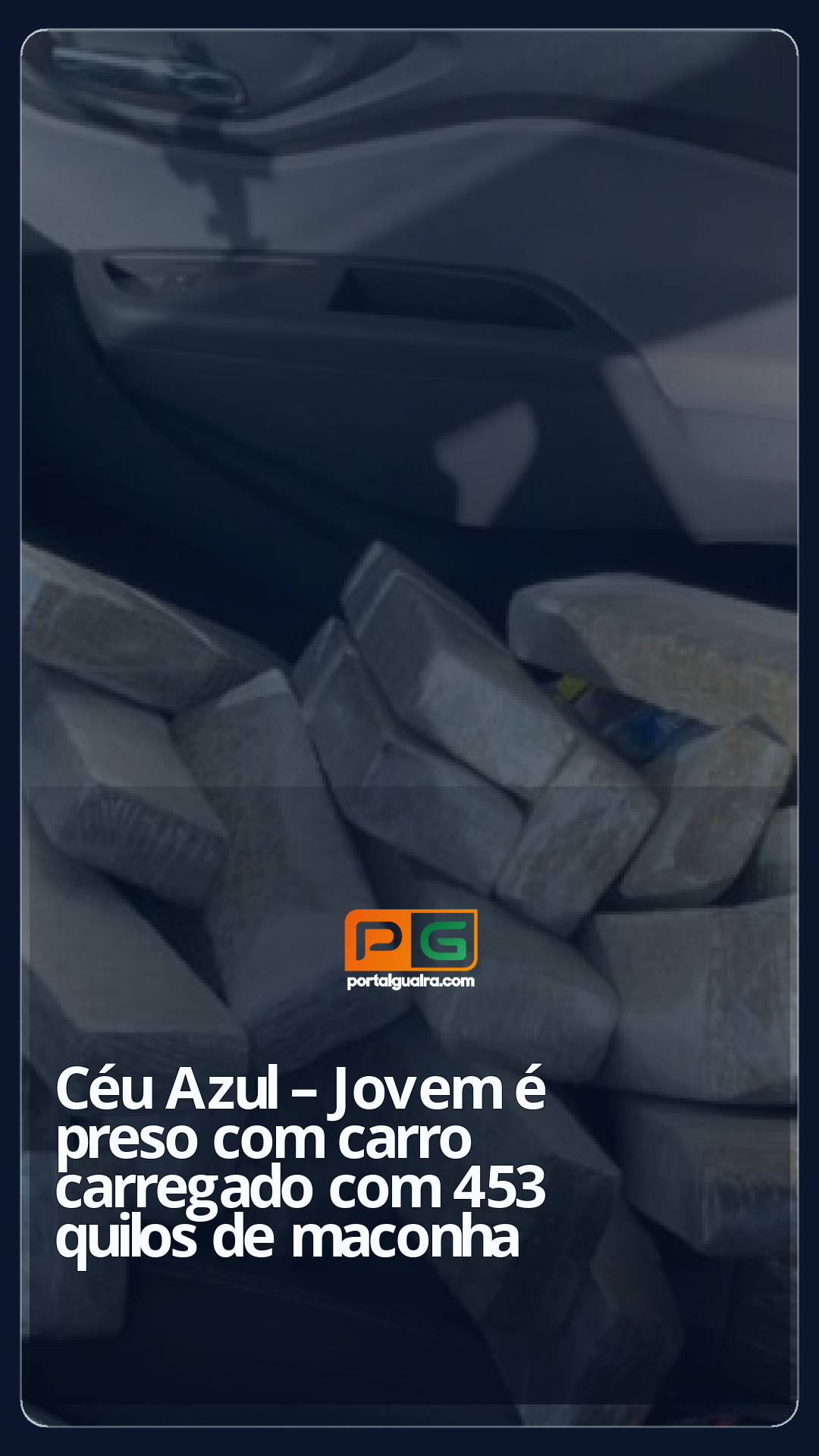 Um jovem de 27 anos foi preso com carro carregado com com 453kg de maconha em Céu Azul, na de terça-feira (2).