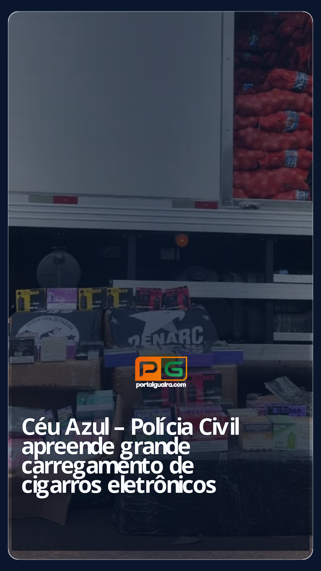 Na manhã de sábado (12), a Polícia Civil do Paraná (PCPR) apreendeu um grande carregamento de cigarros eletrônicos em Céu Azul. Os produtos, cuja venda é proibida no Brasil desde 2009, eram transportados em um caminhão em meio a uma carga lícita de cebolas.