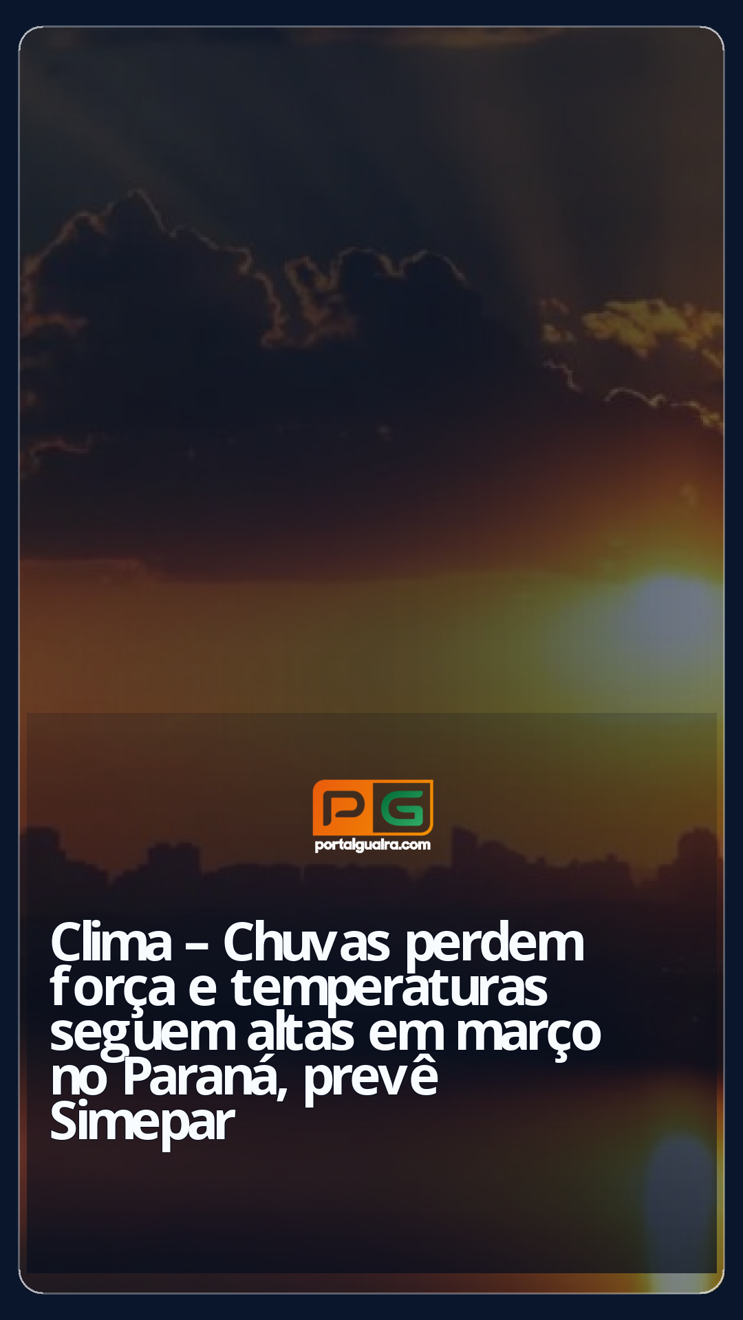 Março começa neste sábado e chega ao Paraná com temperaturas máximas previstas de até 37°C, seguindo o ritmo de fevereiro. No último dia deste mês, nove cidades registraram temperaturas acima de 35°C antes mesmo das 15h: Altônia, Capanema, Cambará, Cândido de Abreu, Cerro Azul, Loanda, Palotina, Santa Helena e Umuarama. Nas praias de água doce de Porto Rico (Noroeste), por exemplo, já fazia 28°C antes das 9h nesta sexta-feira.